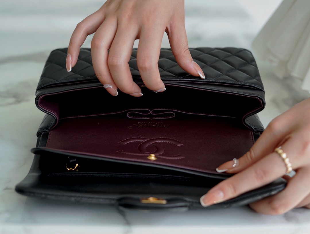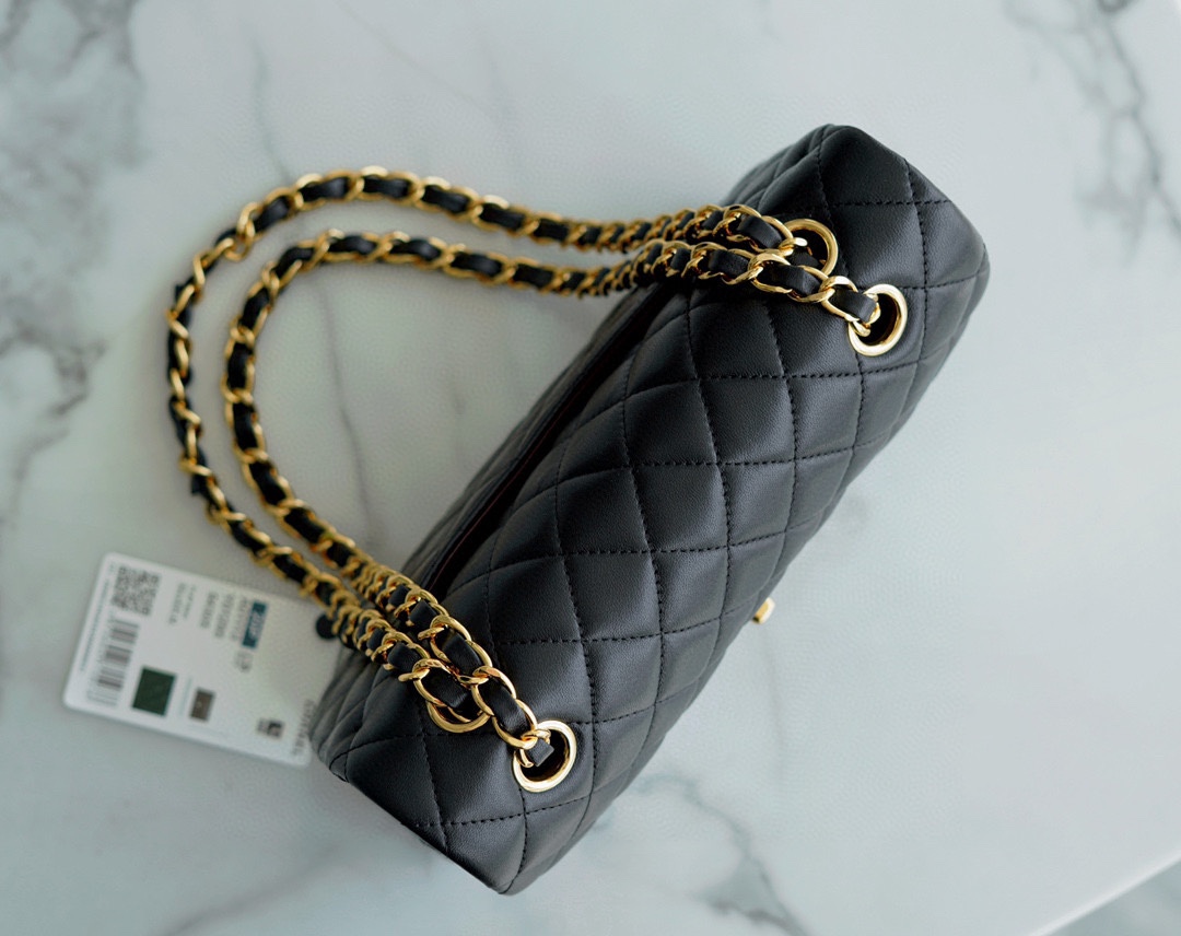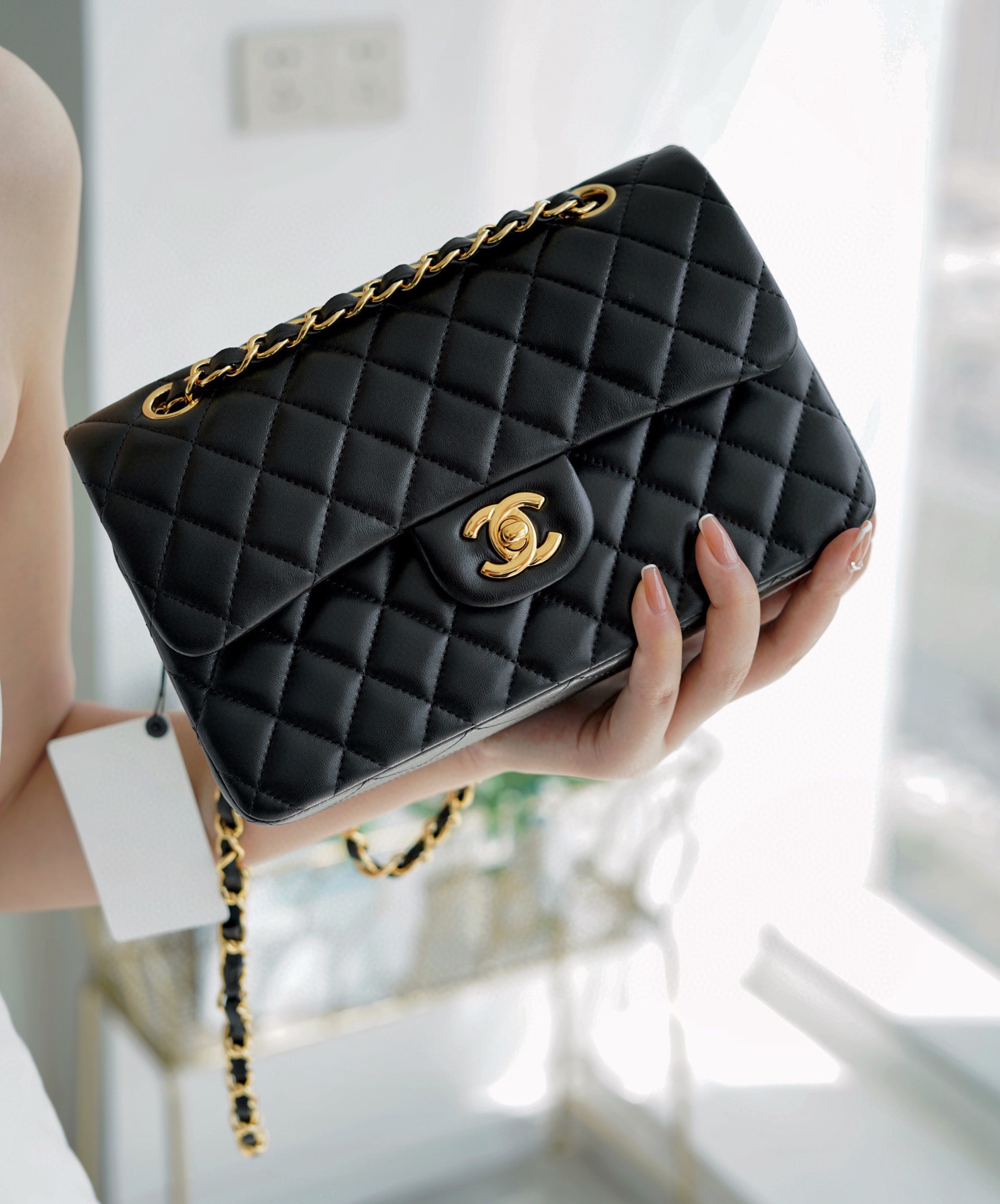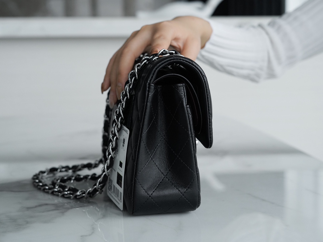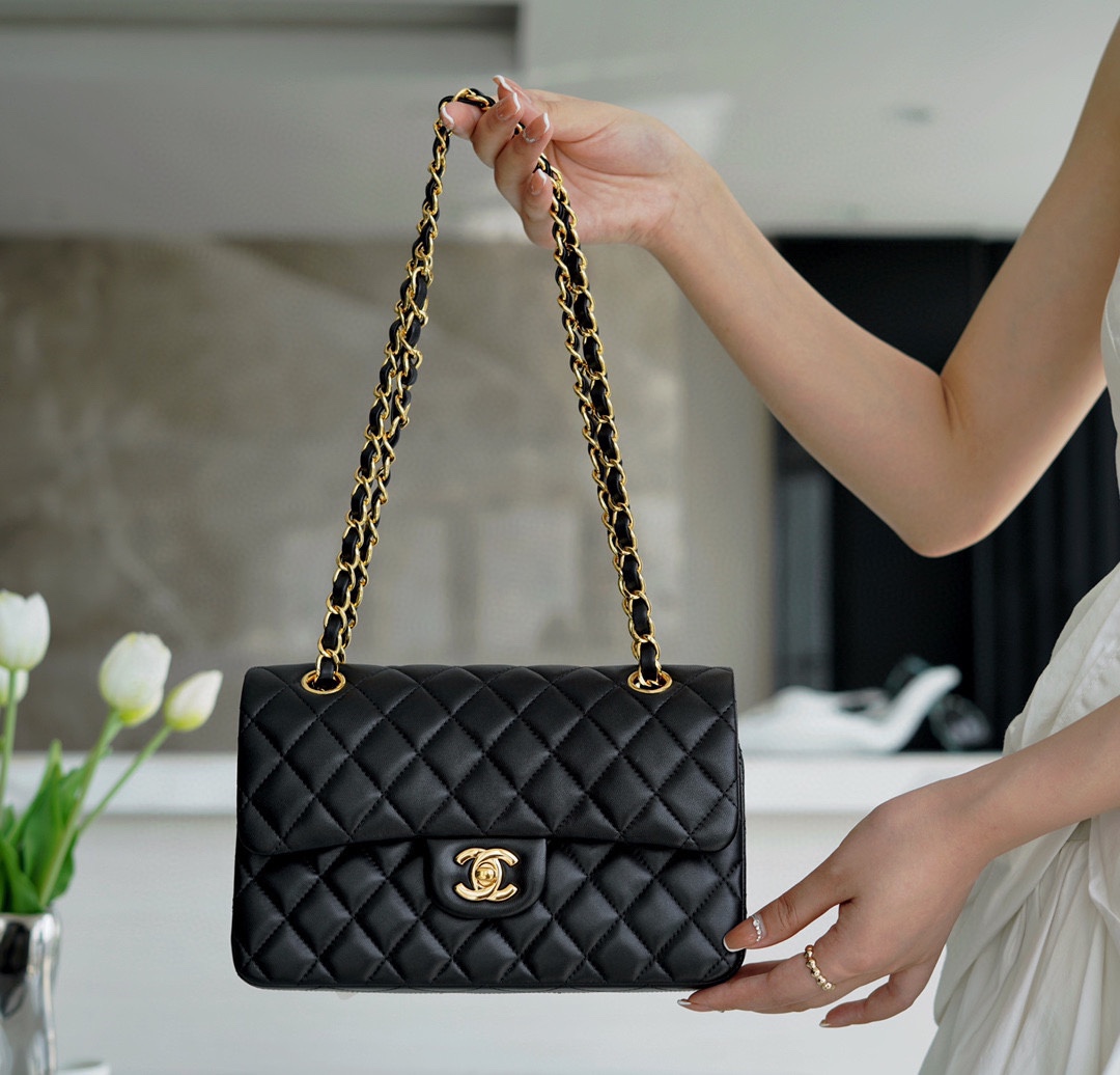 「Classic Flap」经典口盖包 黑羊 小号?? 意大利????《????》原产小羊皮??、手感细腻软乎,溢屏而出的质感,嫩得能掐出水的感觉??经典菱格纹设计与皮穿金属的链条搭配,简单大气,既有复古的味道同时又优雅摩登,是每个女人都想拥有的一款心仪???????