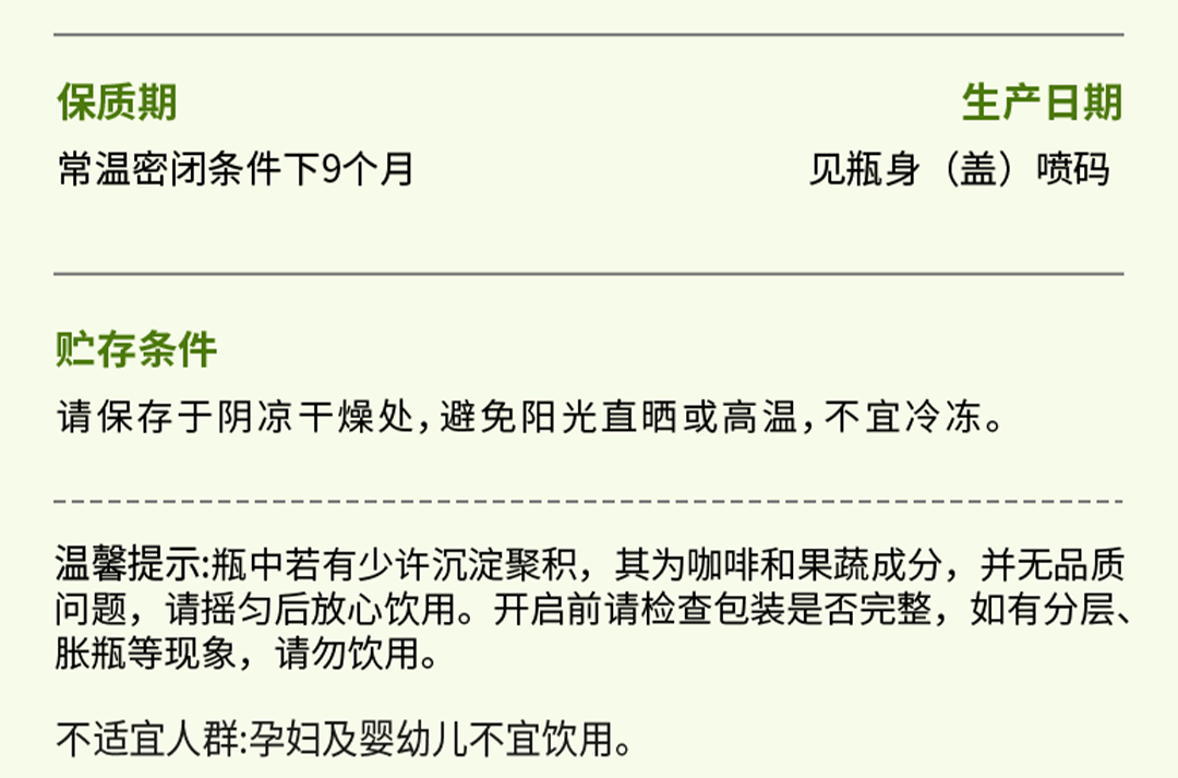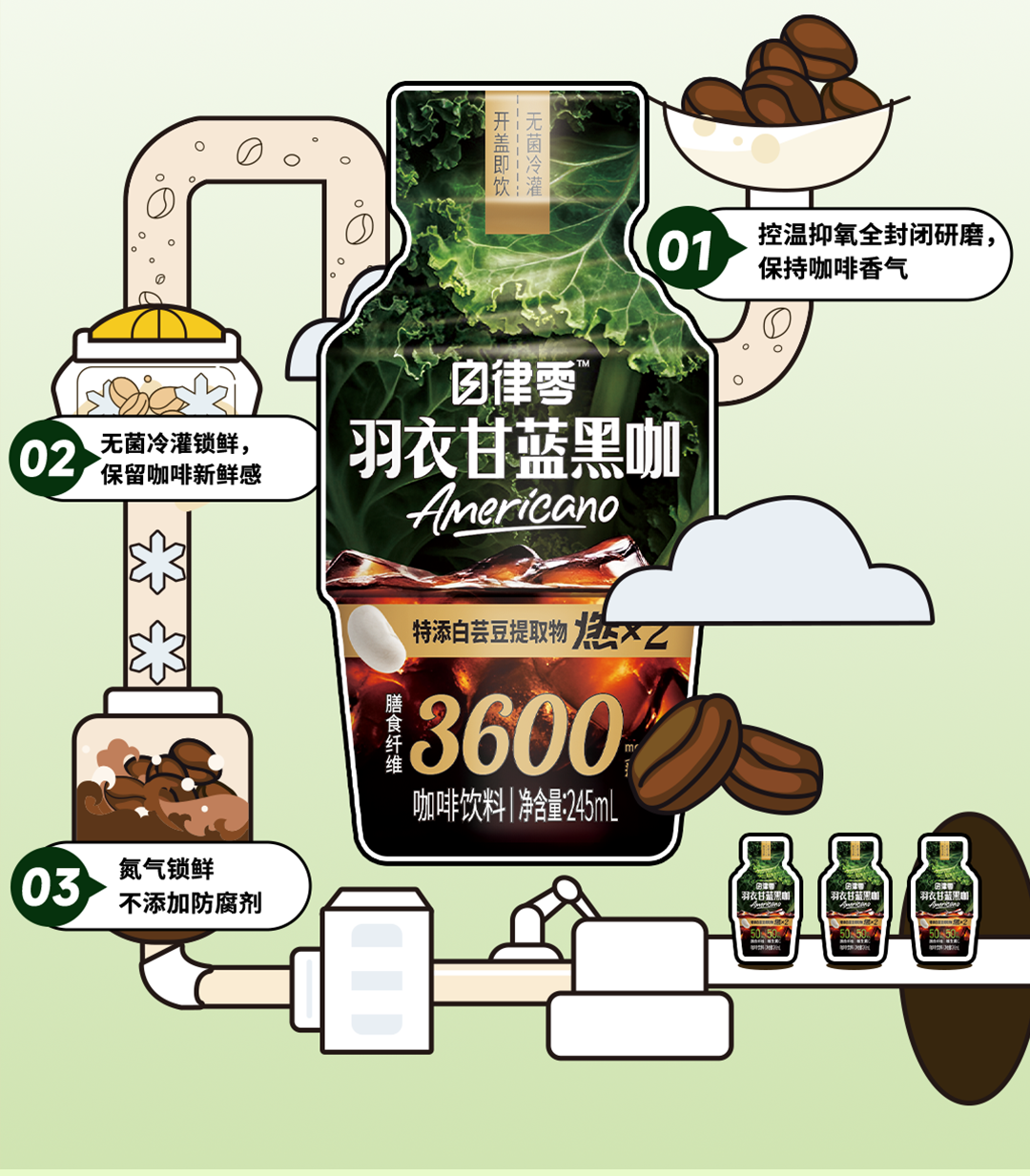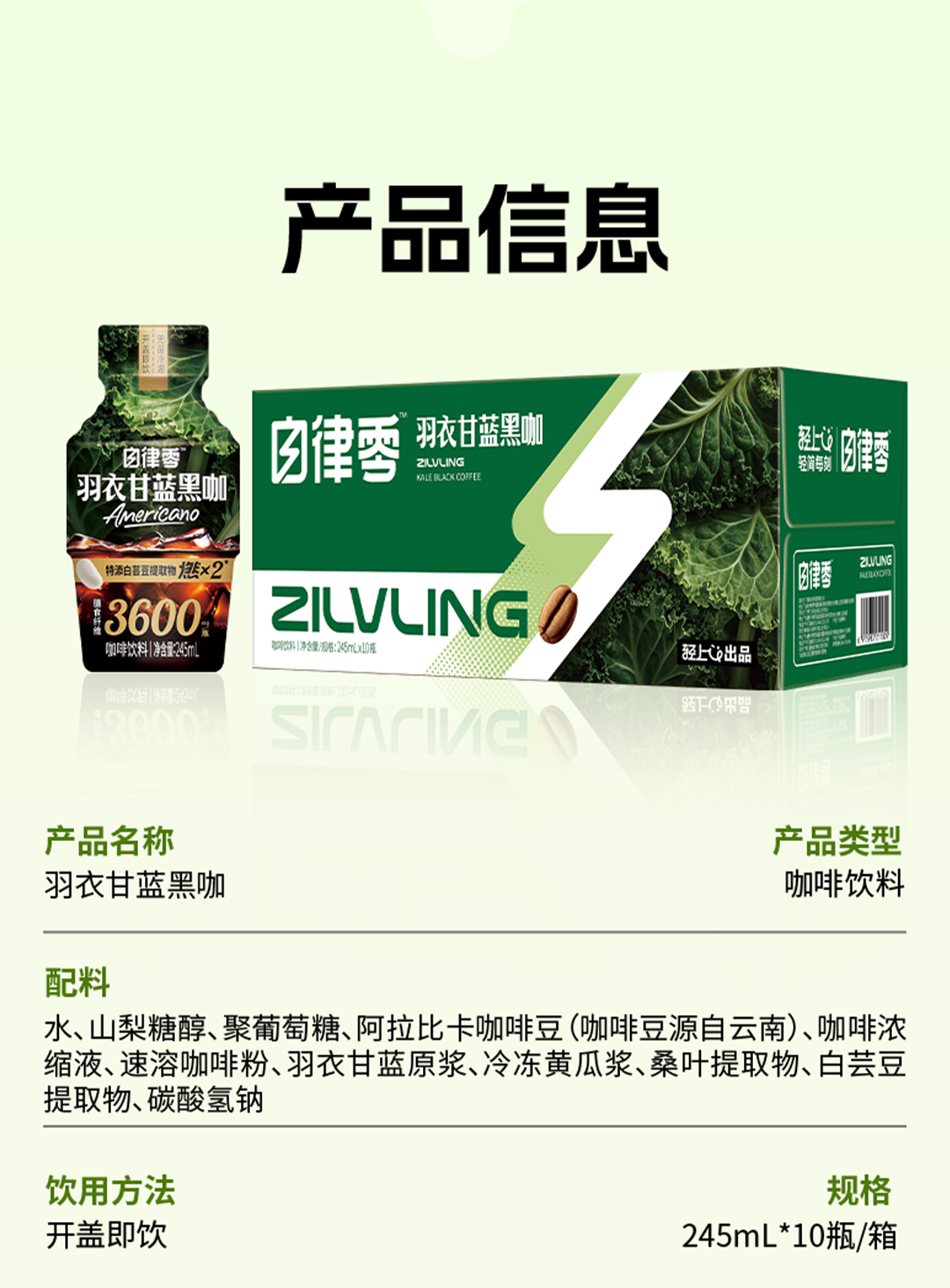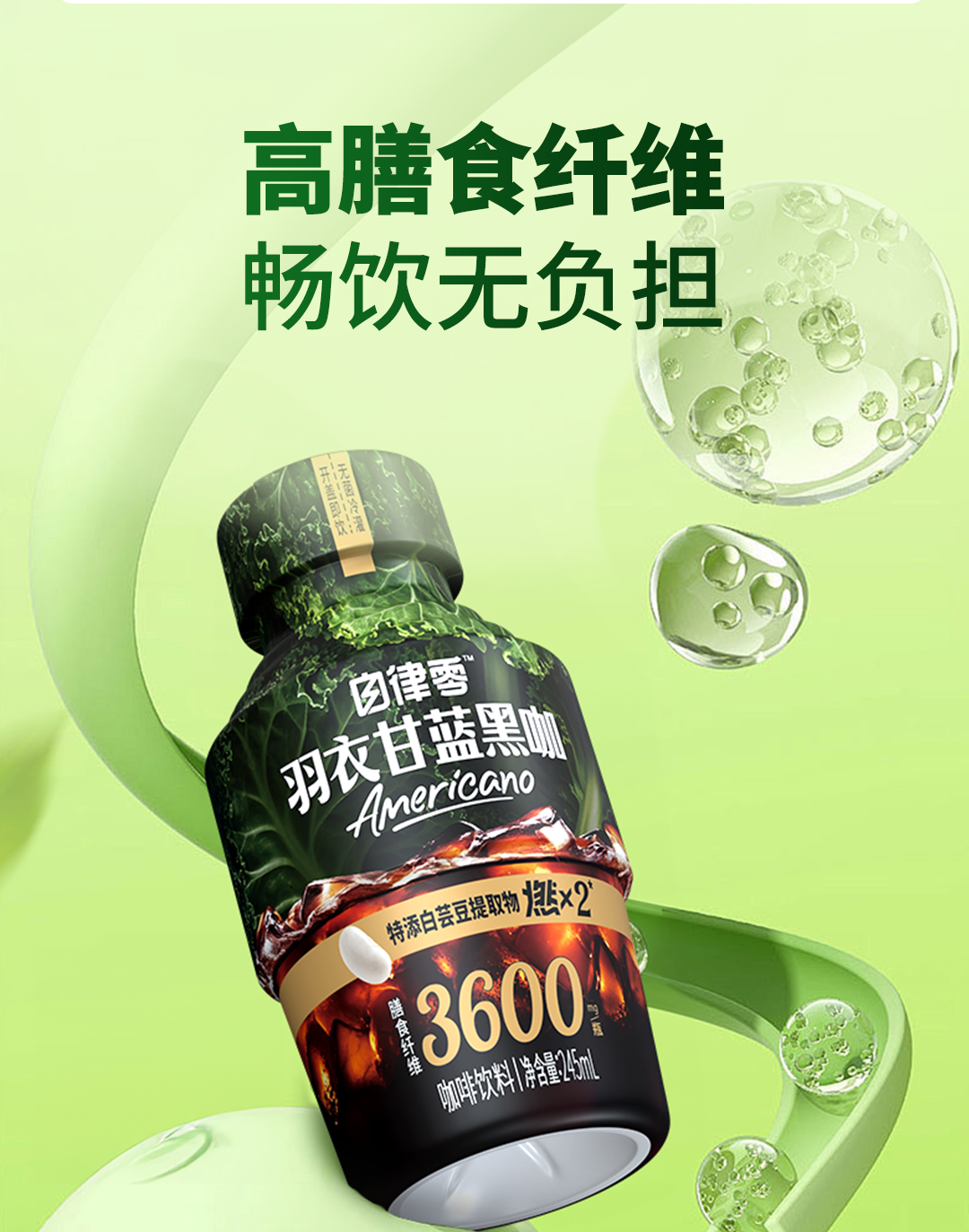 轻上自律零羽衣甘蓝黑咖咖啡饮料高膳食纤维饮料轻负担即饮咖啡