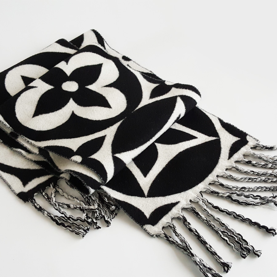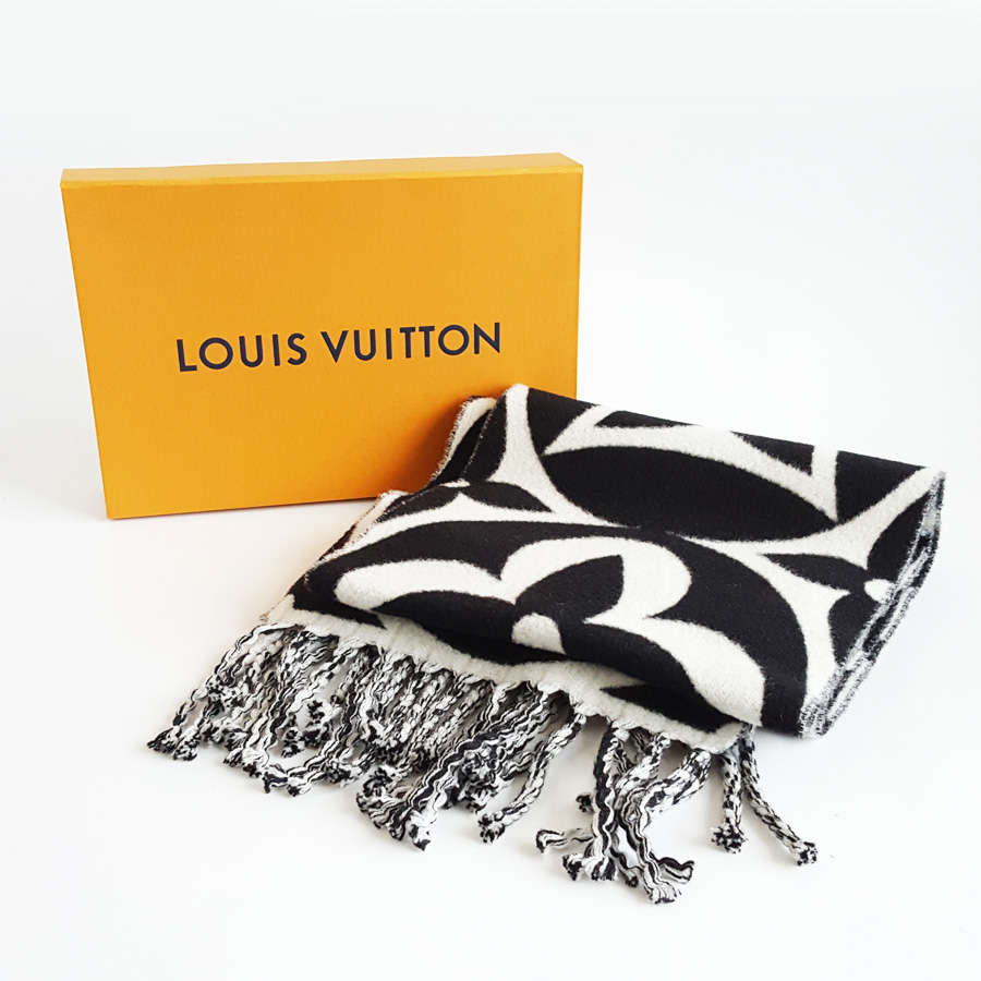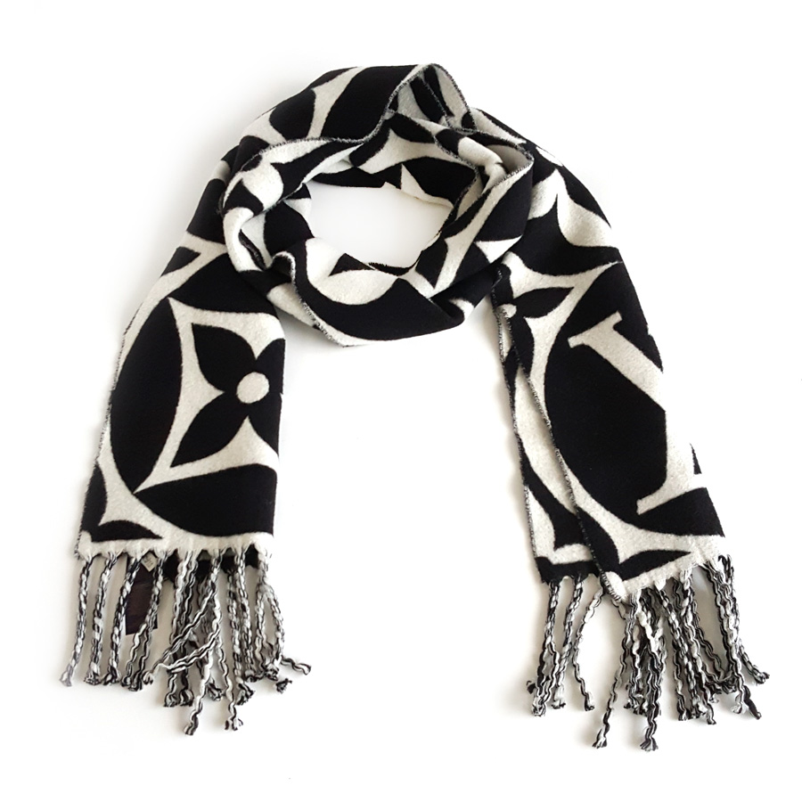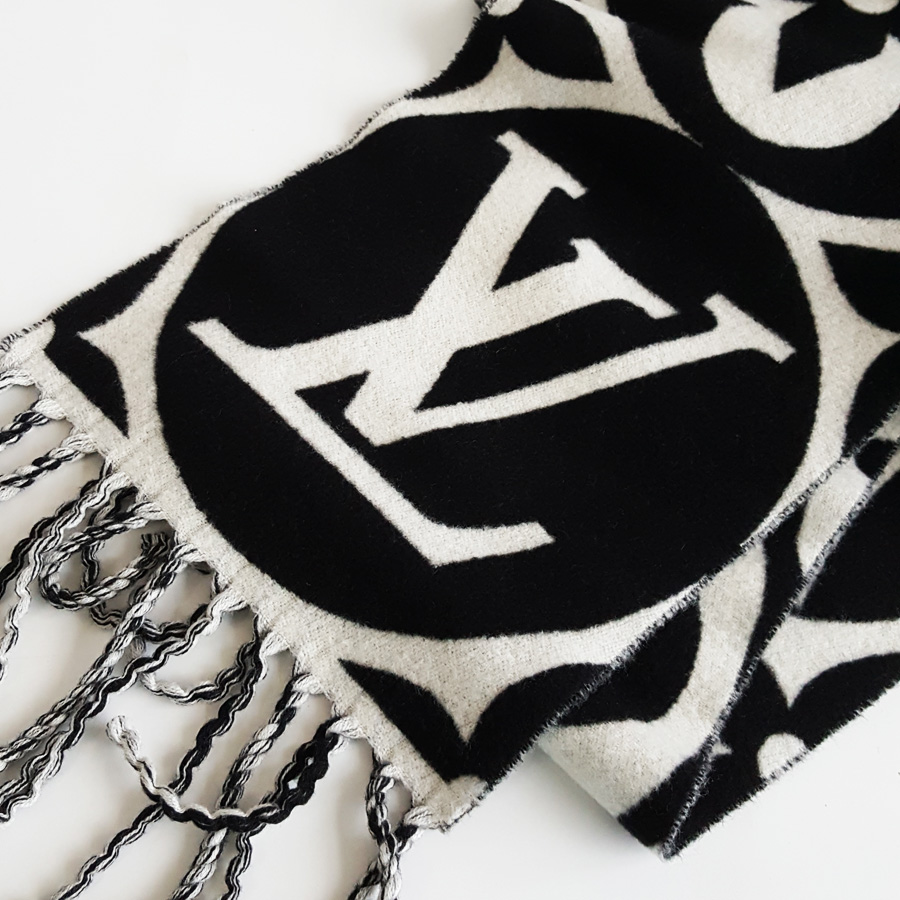 【98新闲置】LV路易威登M79212黑白MEDALLION羊毛流苏围巾中性款251025NJS17