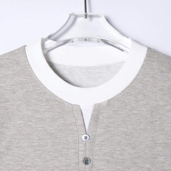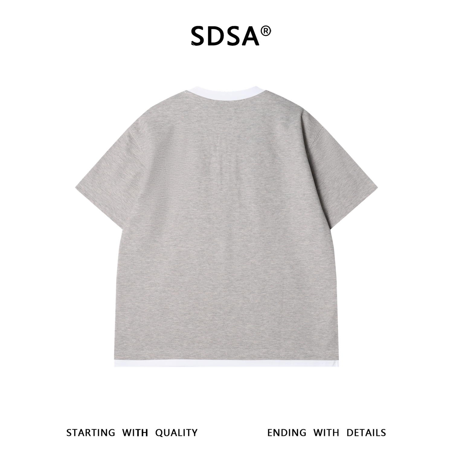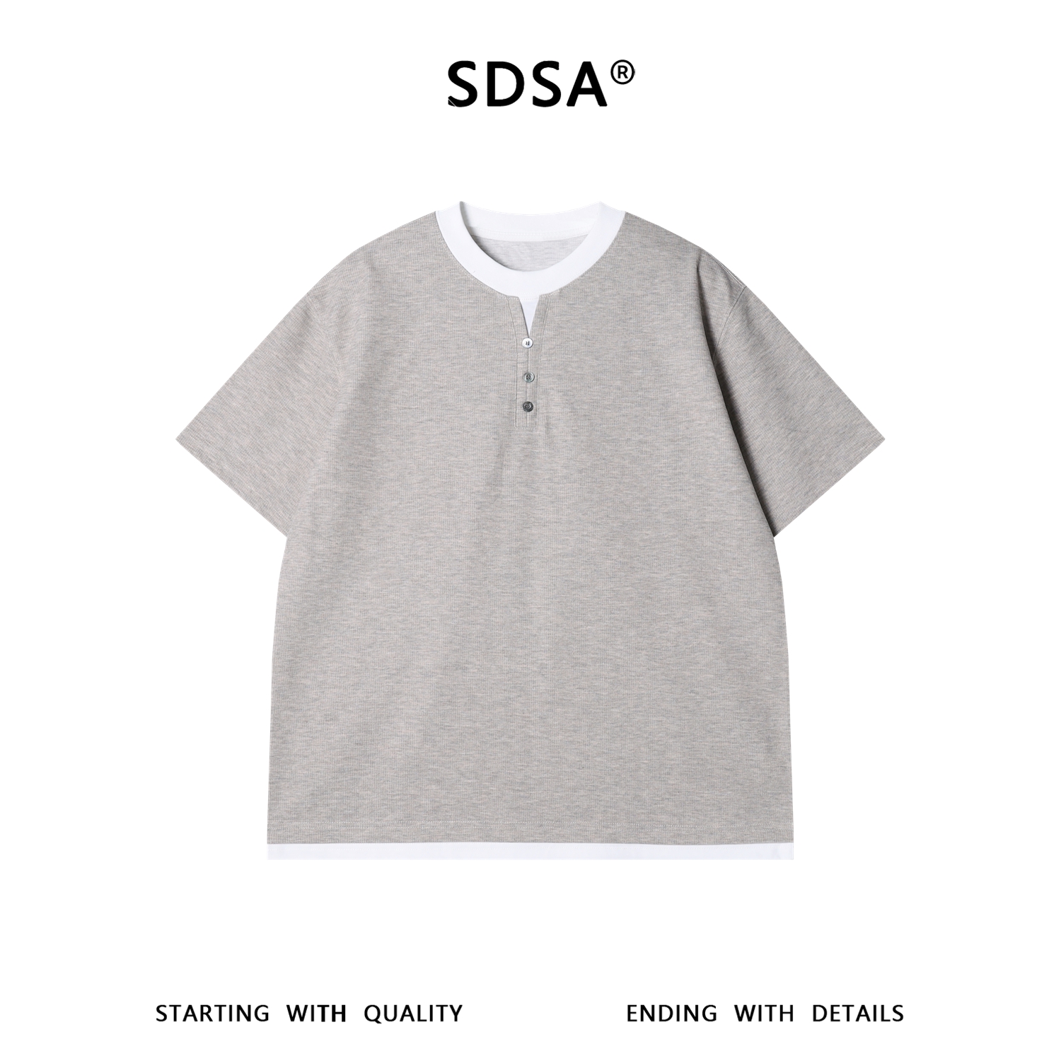 SDSA男装2026新款轻奢华夫格撞色边亨利领短袖T恤宽松肌理感上衣