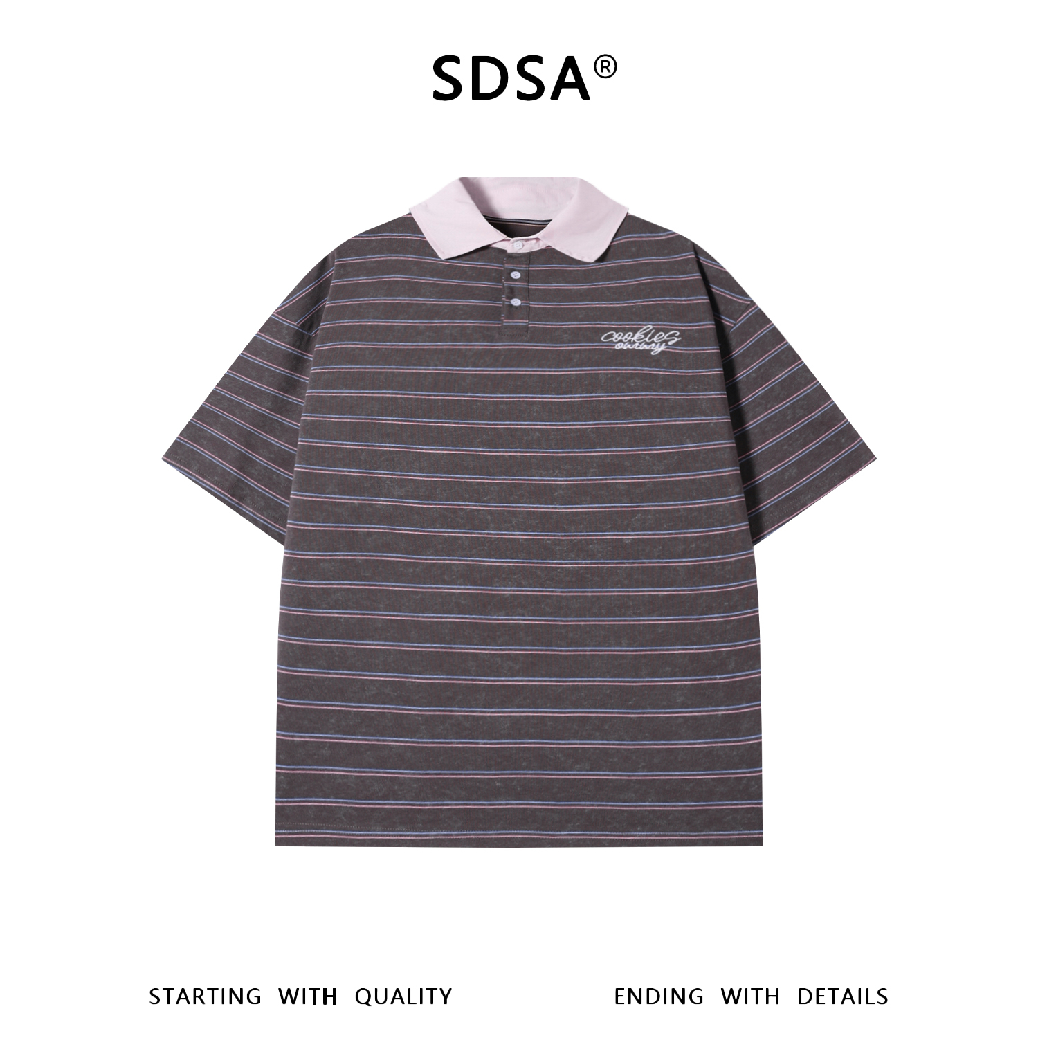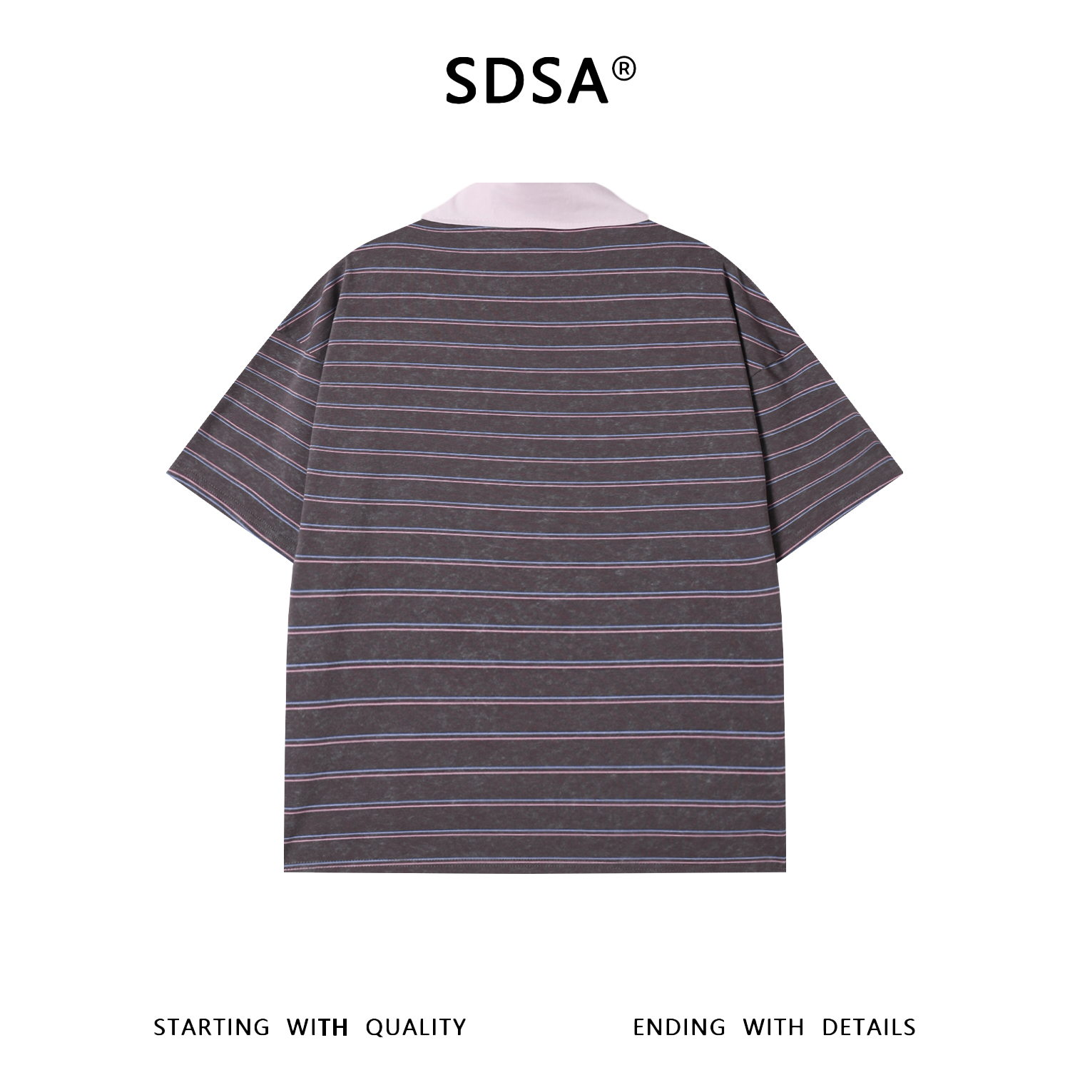 SDSA男装2026新款高贵轻奢韩系撞色条纹刺绣字母翻领短袖T恤百搭