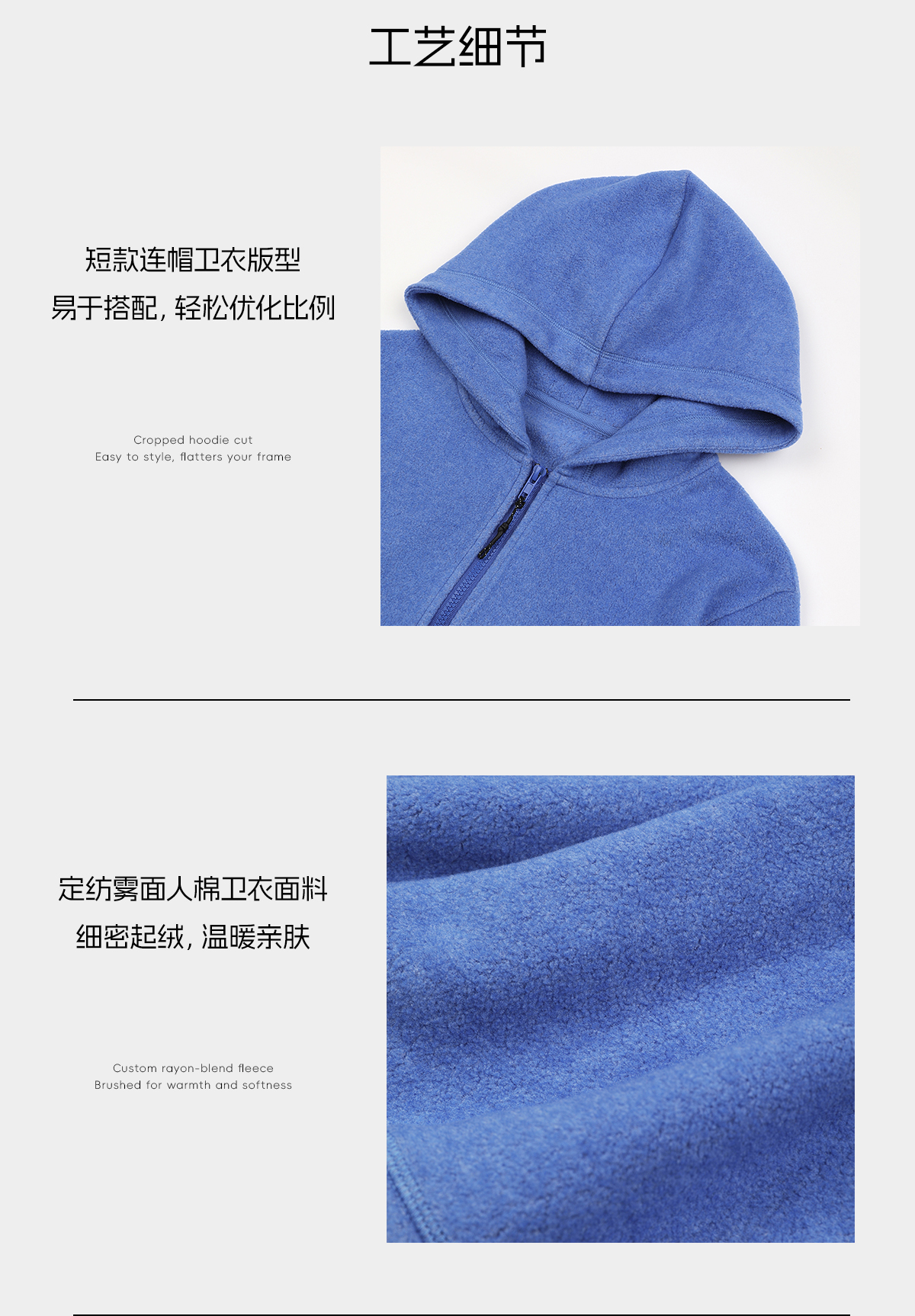 ROMI STUDIO“美式复古”细密起绒蓝色雾面连帽开衫卫衣 RWCSS67345