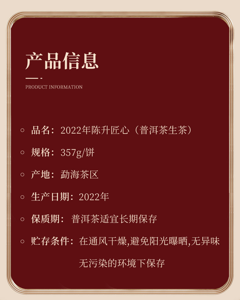 陈升号 2022年陈升匠心357g(生茶)