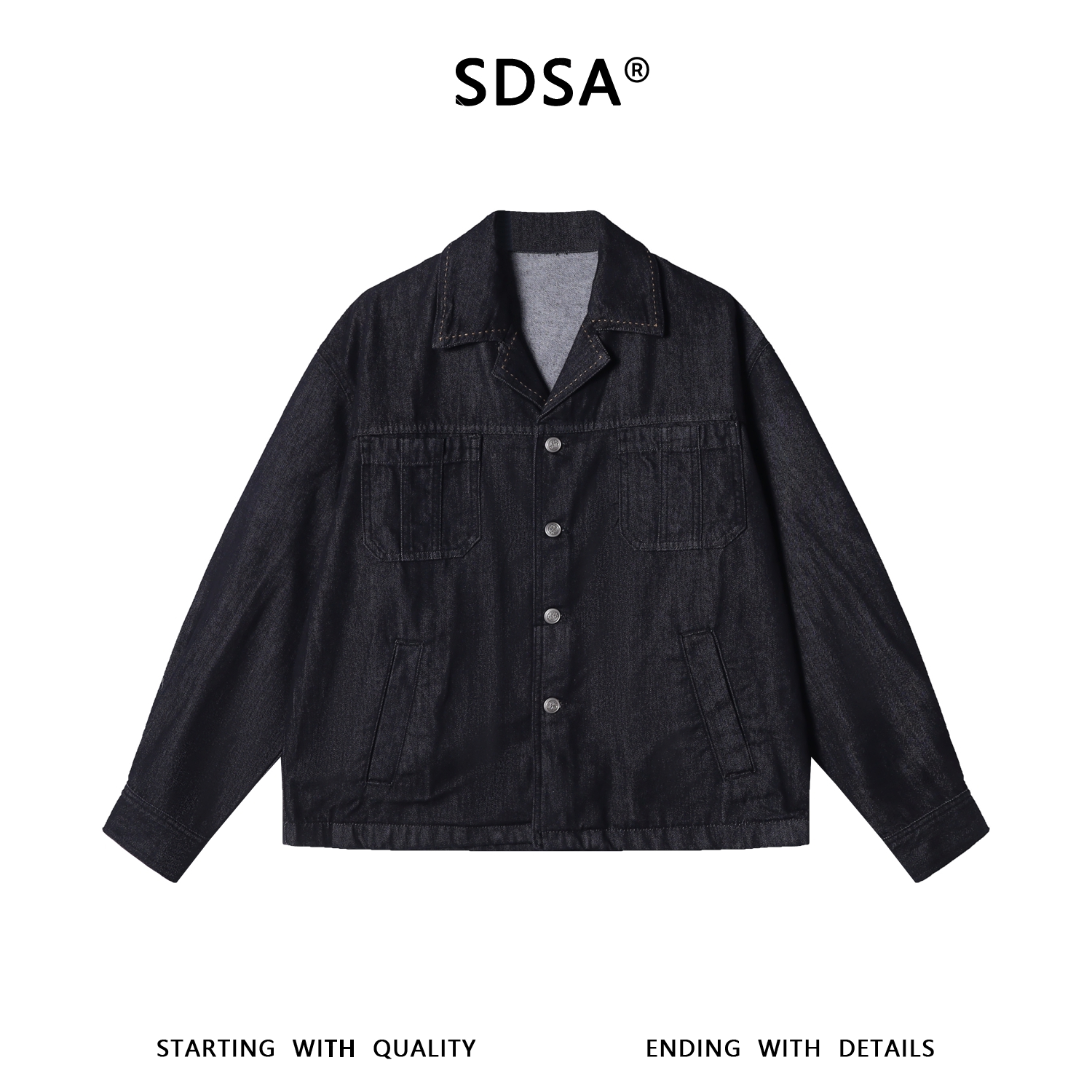 SDSA男装2026新款高贵轻奢时尚复古纯色多口袋翻袋牛仔夹克外套