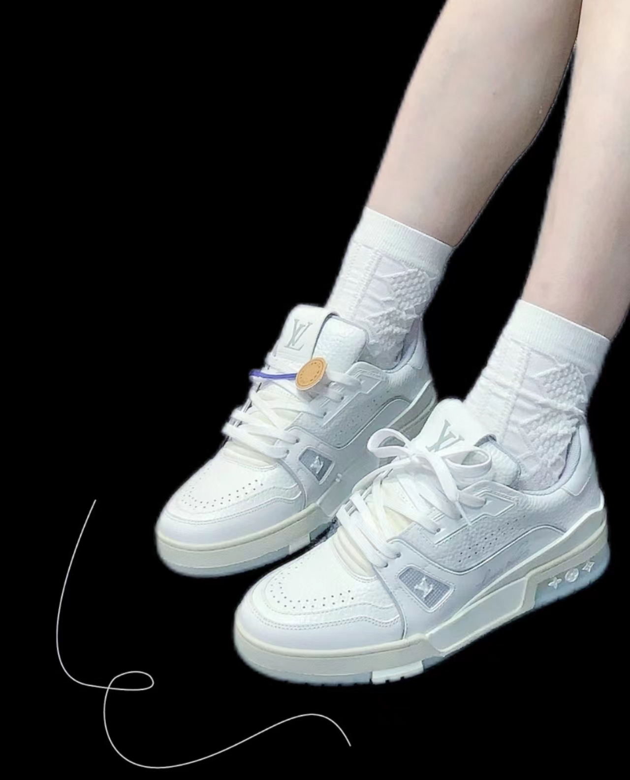 驴家 Trainer 皮革 系带浮雕 时尚板鞋 情侣款 男女同款 白水泥(HC)