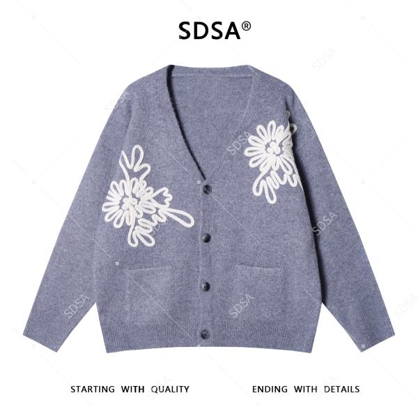 2718SDSA男士秋冬新款痞帅男装韩版V领极简风毛衣立体针织花朵针织衫