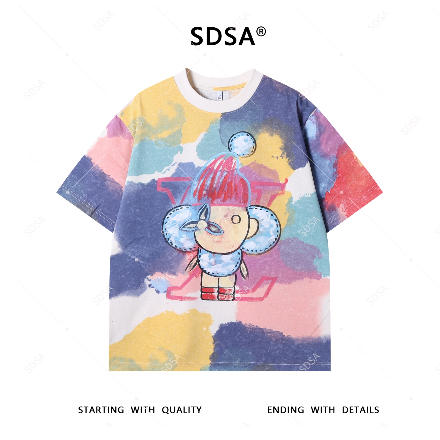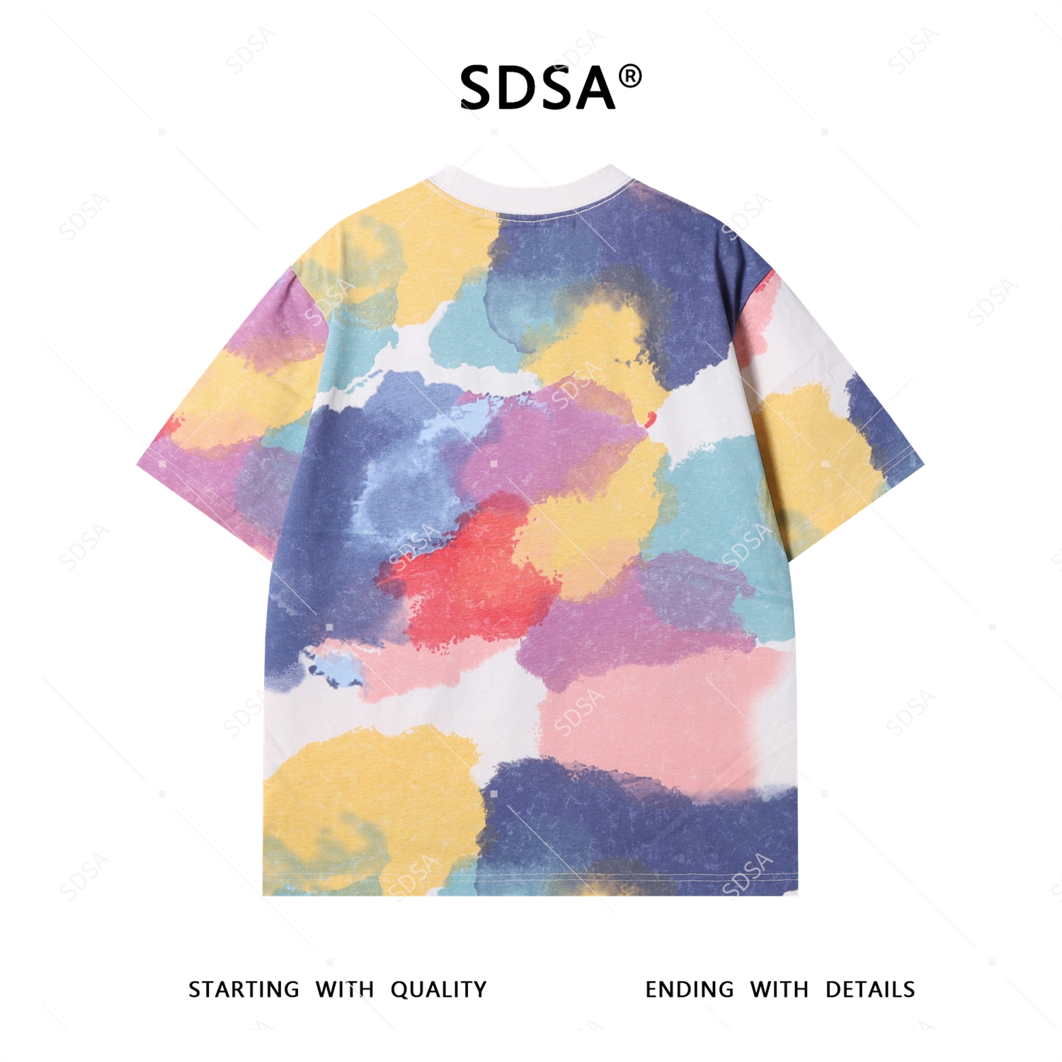 T4400SDSA夏季新款男士痞帅抽象彩色涂鸦印花圆领短袖T恤宽松休闲百搭