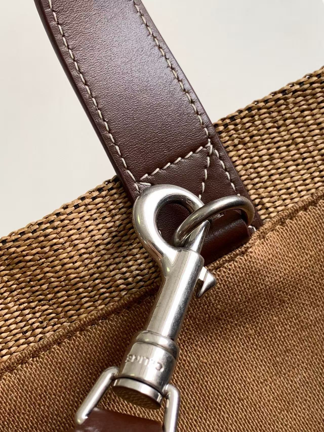 24s|夏季新品条纹编织织物牛皮革Tote Cacbs