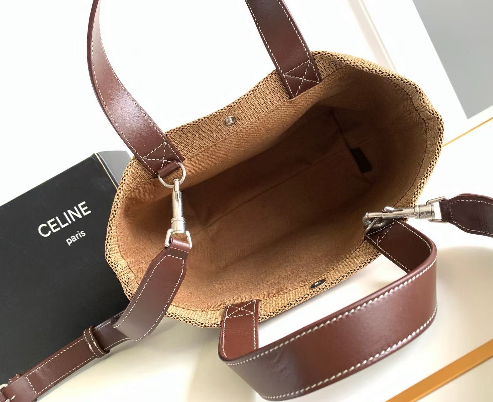 编织条纹织物+cel字母logo+编织衬里~配置肩带 可拎可背~实用又百搭
