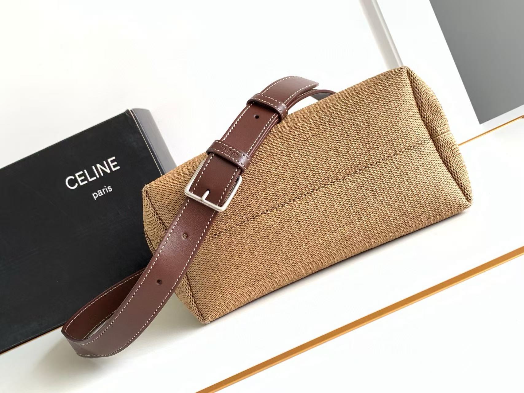 轻盈的包身散发着轻松的夏日气息啦~设计简约不简单 卡其与深棕色的条纹交织出慵懒的度假风呦 再点缀上标志性的CELINE字母简直百搭不厌哇~