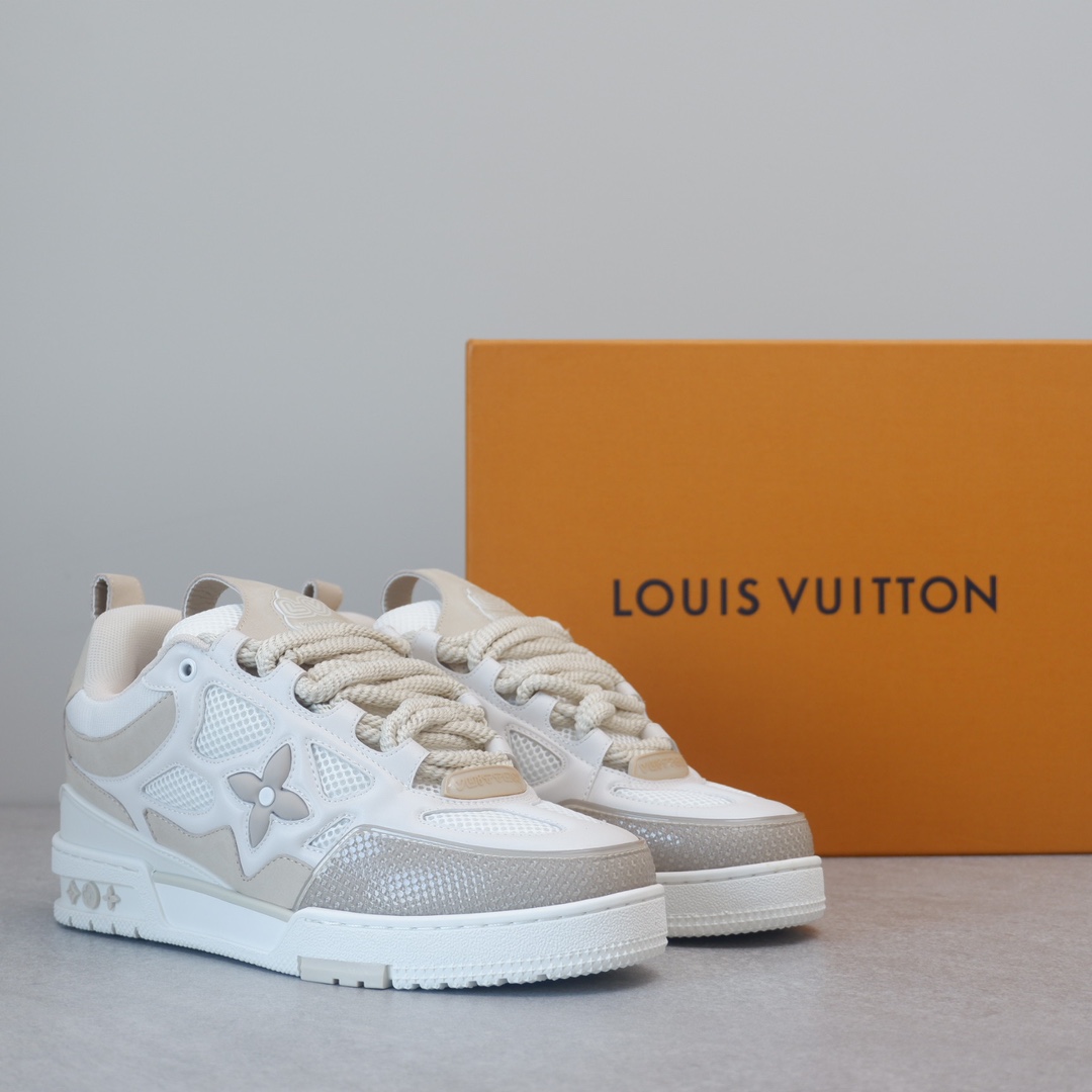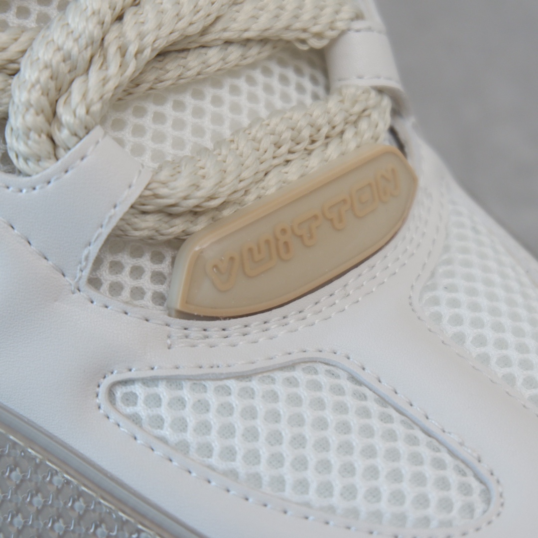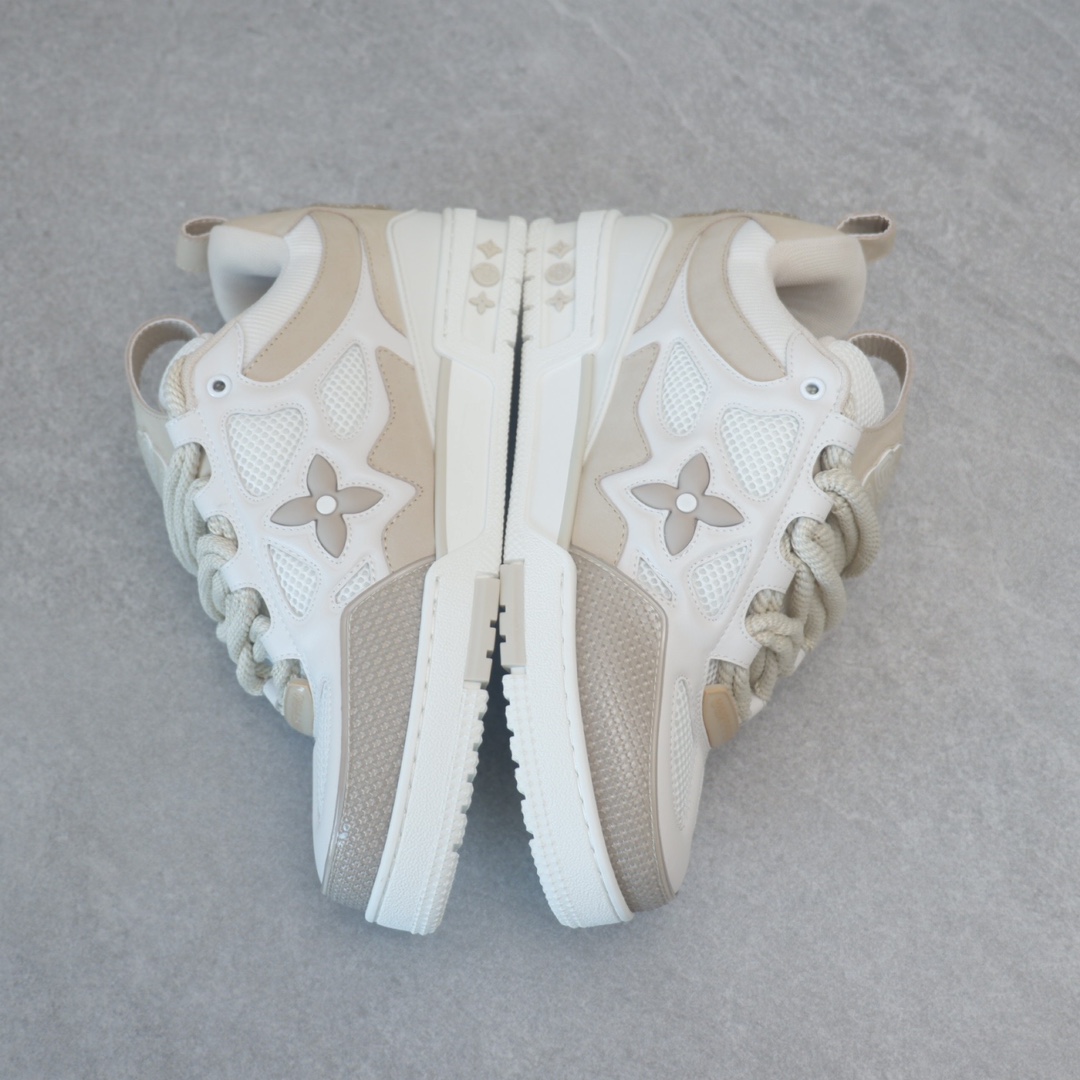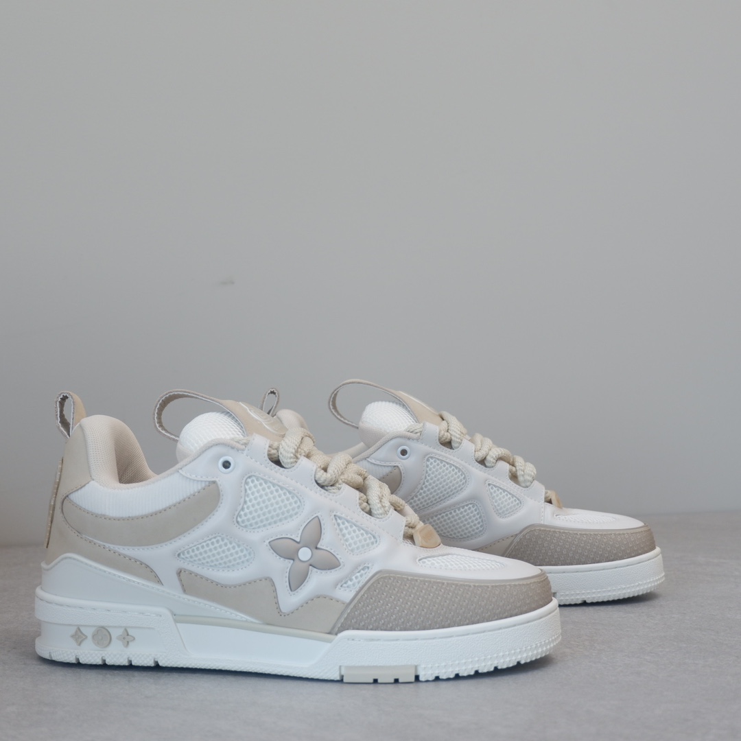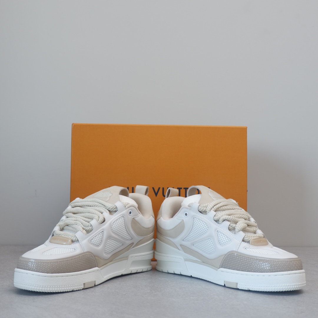 路易威* Skate sneaker该款融入街头元素的鞋履借鉴了上述系列的90年代设计风格,采用意大利制造并结合技术网眼布料、小牛皮和绒面革材质呈现,将结合Monogram 牛仔布与闪闪发光的施华洛世奇水晶和技术网格相结合工艺,以及绳素般的粗鞋带亦为值得留意的亮点