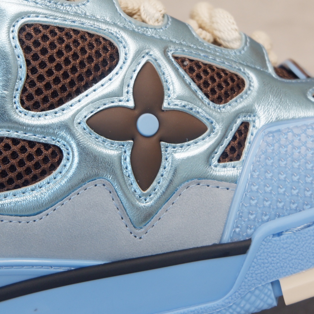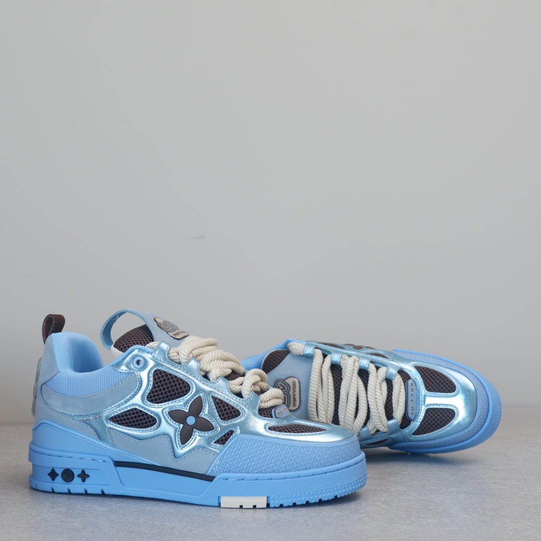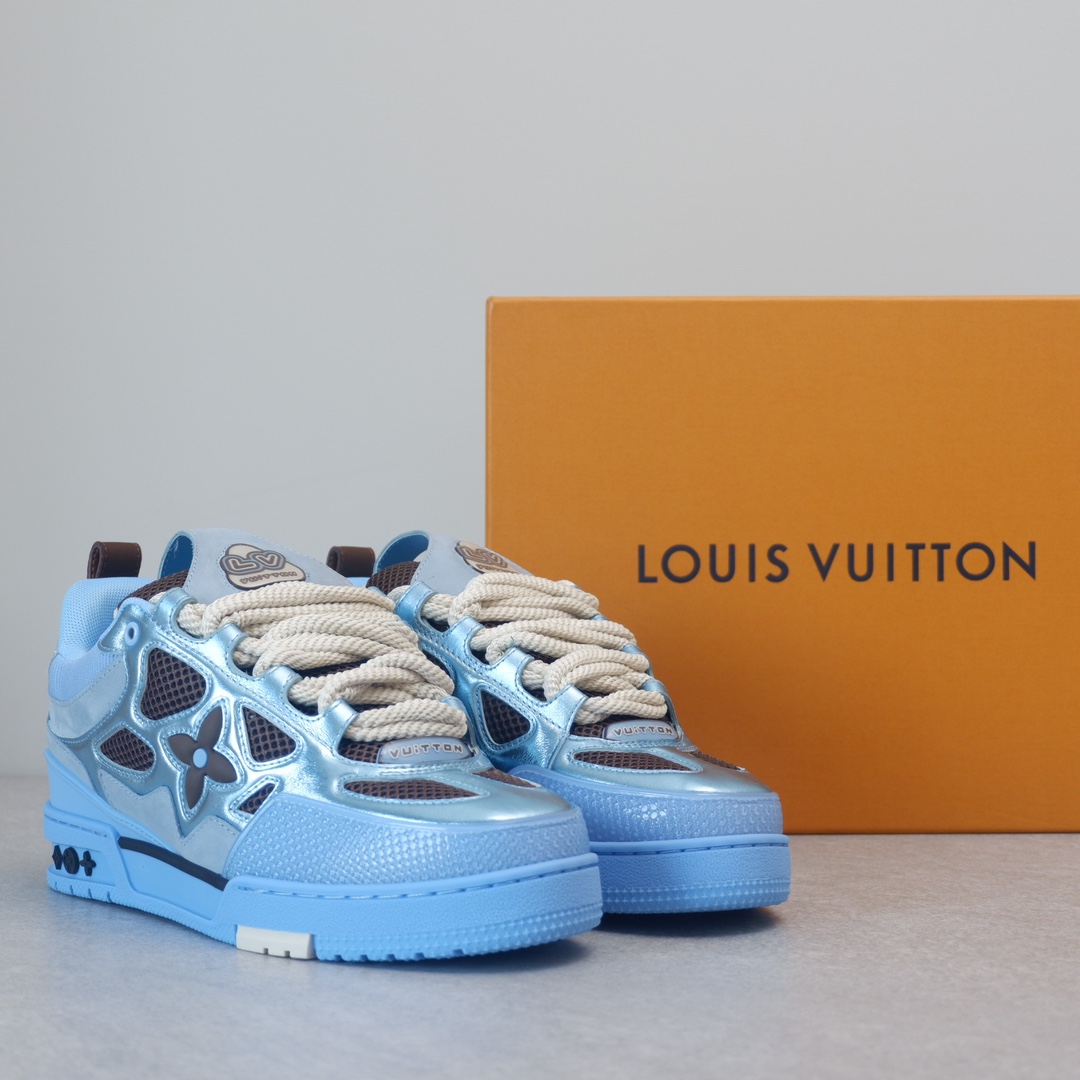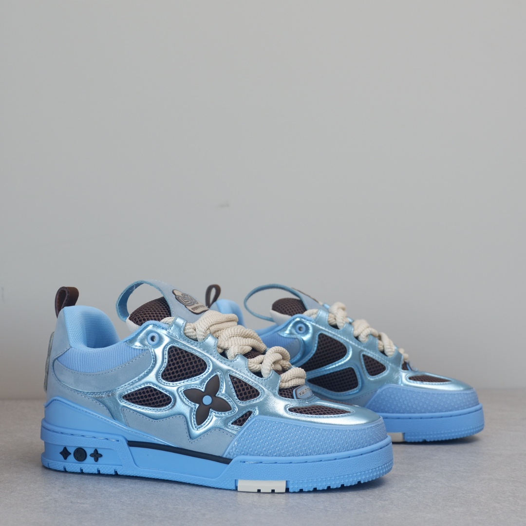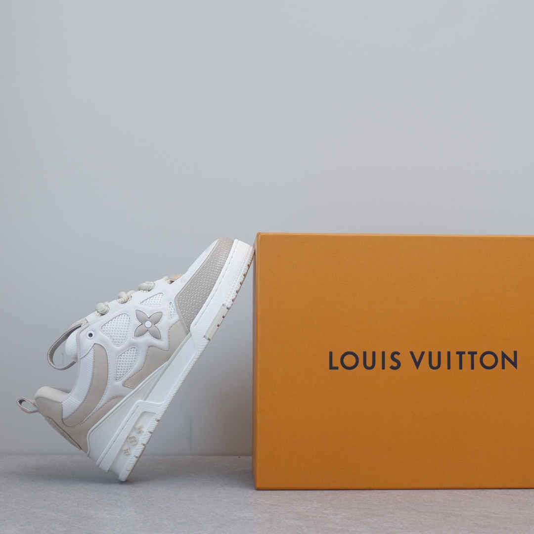 路易威* Skate sneaker该款融入街头元素的鞋履借鉴了上述系列的90年代设计风格,采用意大利制造并结合技术网眼布料、小牛皮和绒面革材质呈现,将结合Monogram 牛仔布与闪闪发光的施华洛世奇水晶和技术网格相结合工艺,以及绳素般的粗鞋带亦为值得留意的亮点