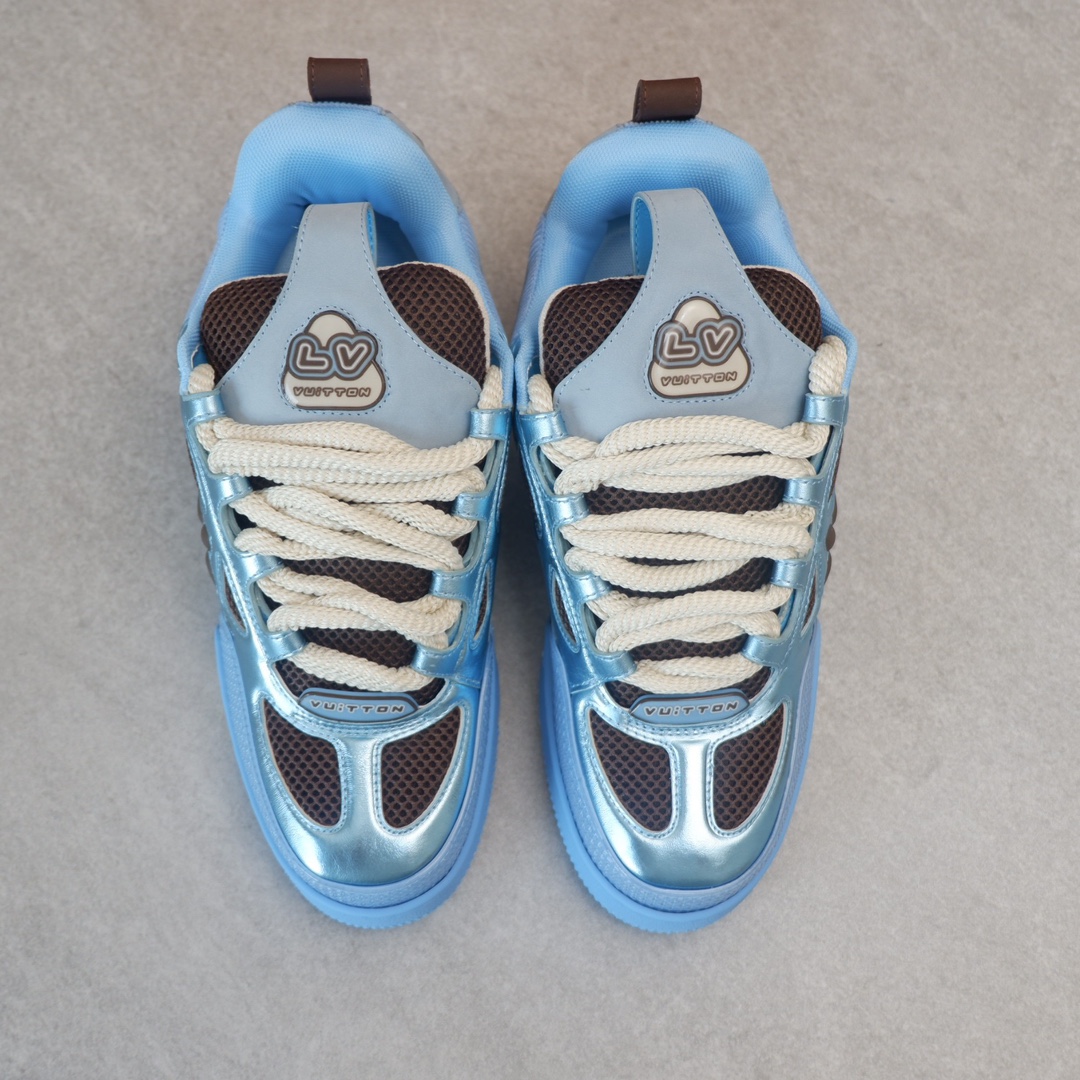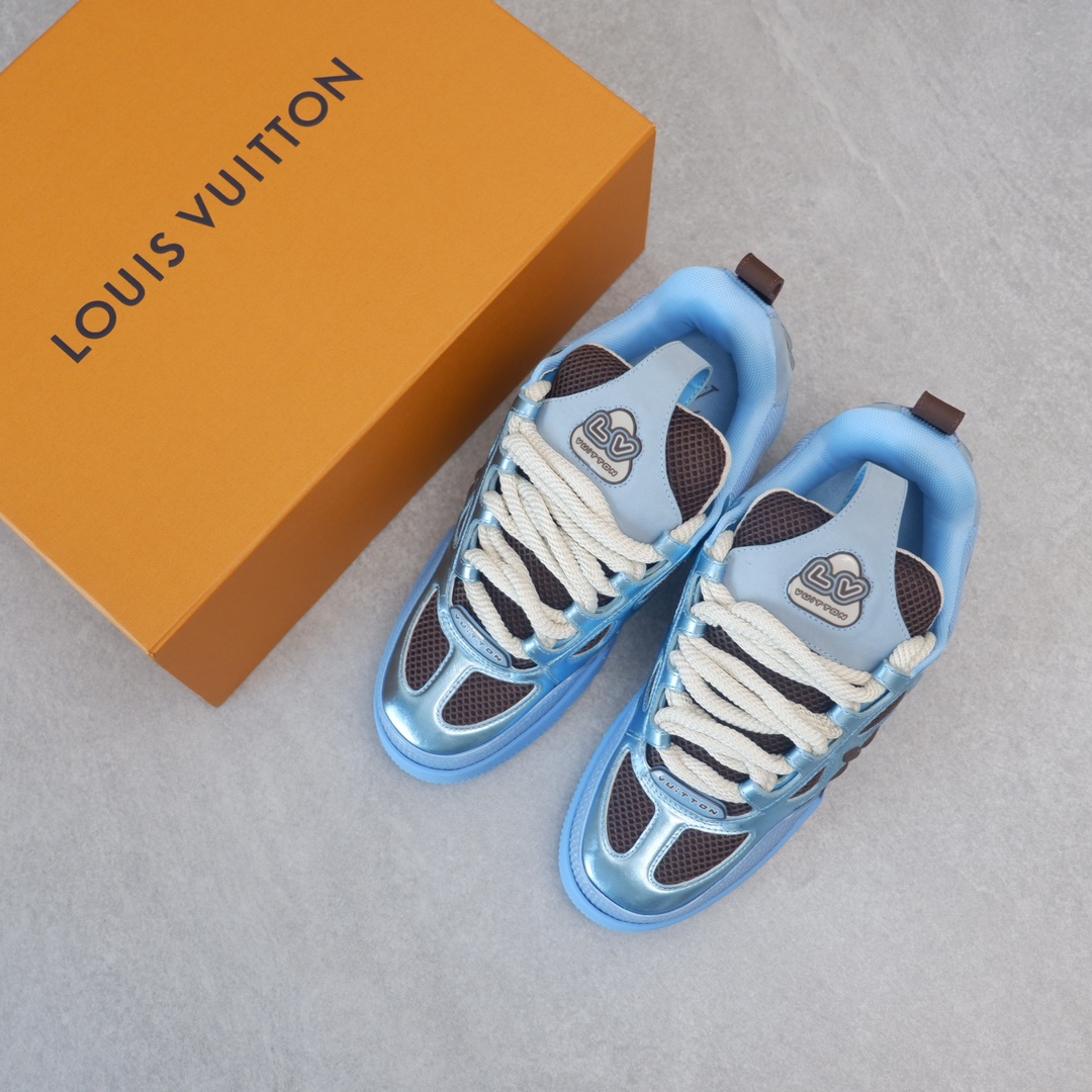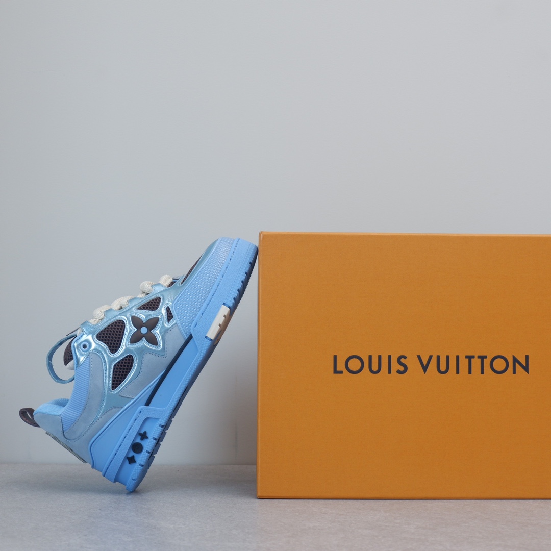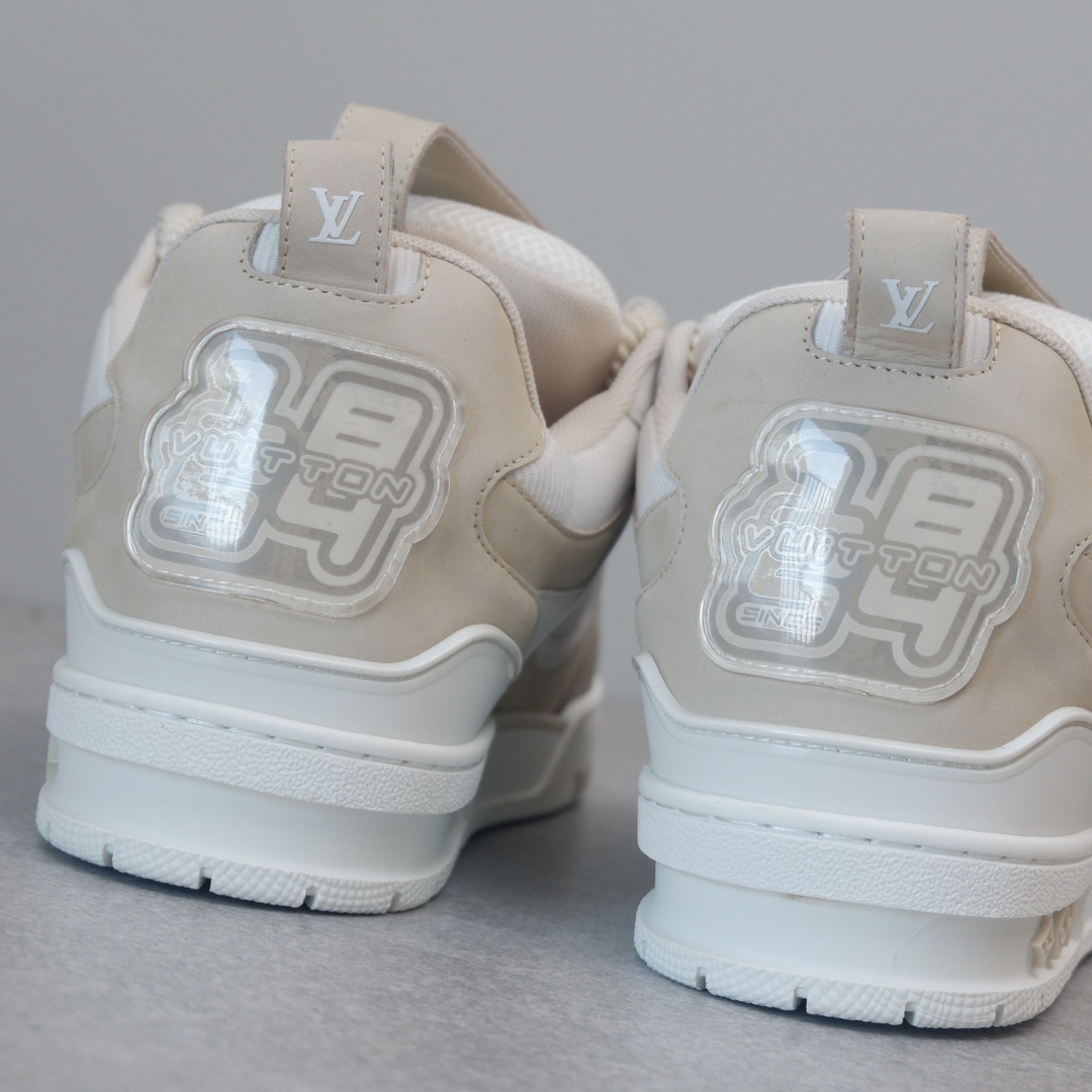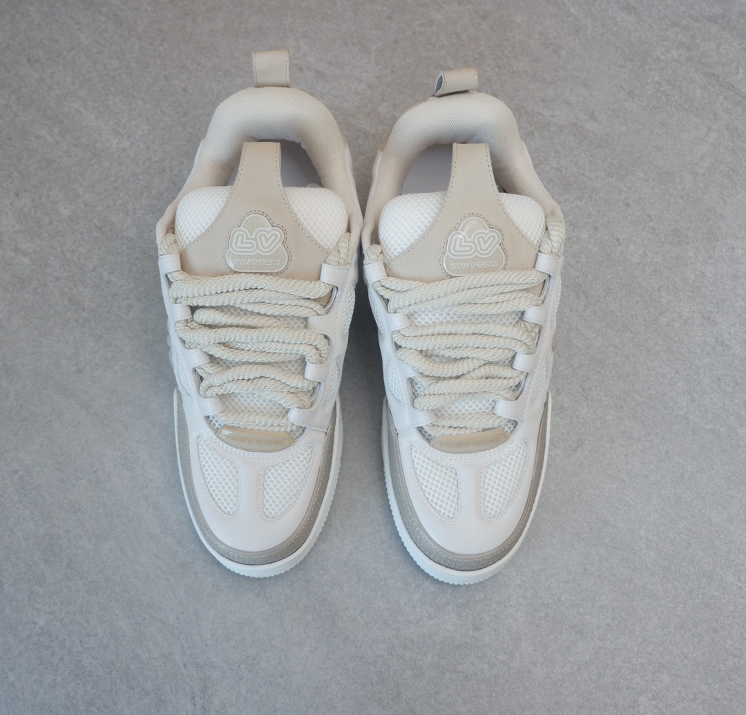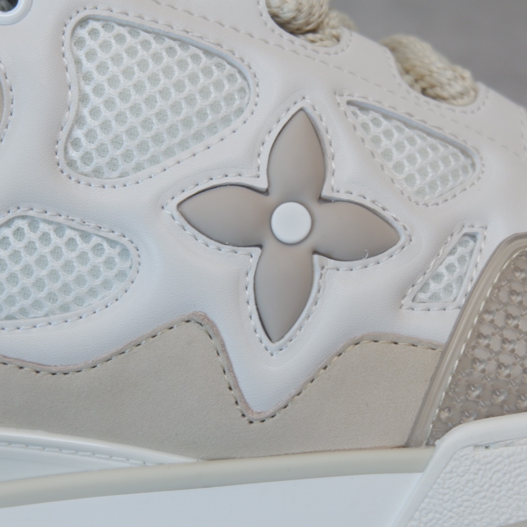 路易威* Skate sneaker该款融入街头元素的鞋履借鉴了上述系列的90年代设计风格,采用意大利制造并结合技术网眼布料、小牛皮和绒面革材质呈现,将结合Monogram 牛仔布与闪闪发光的施华洛世奇水晶和技术网格相结合工艺,以及绳素般的粗鞋带亦为值得留意的亮点