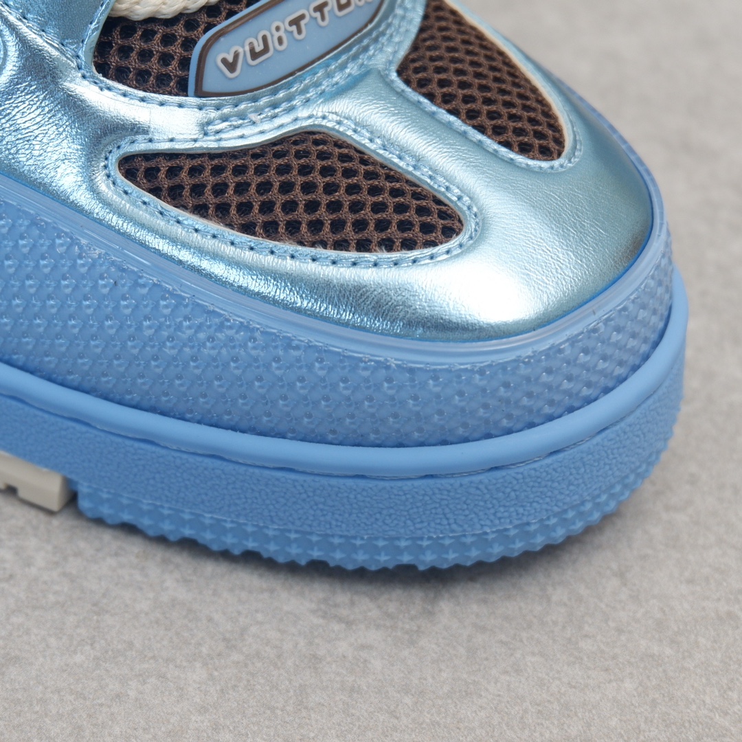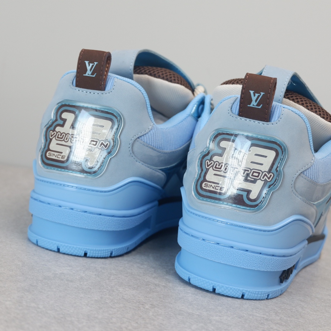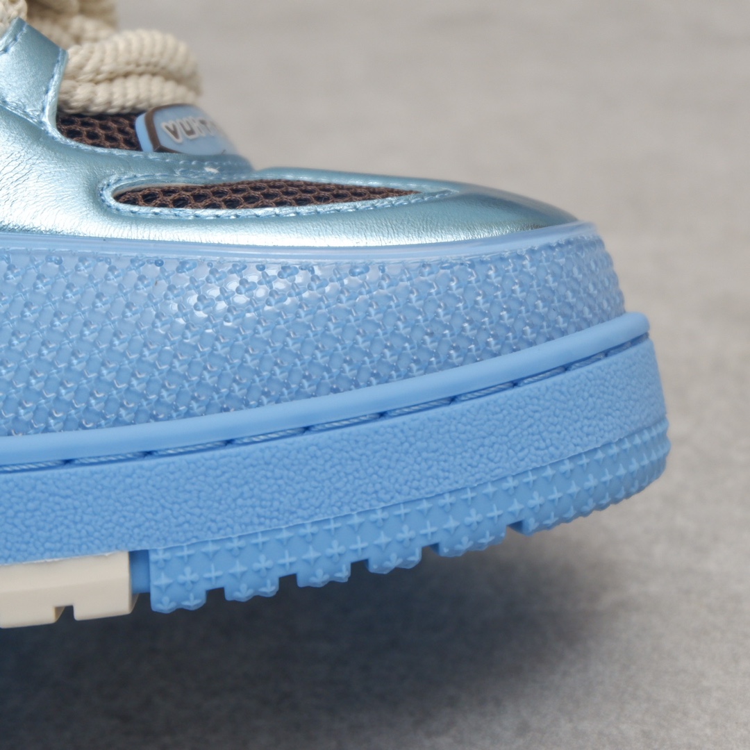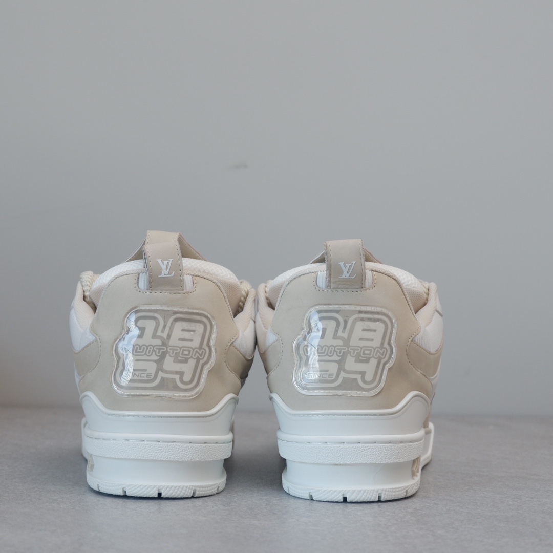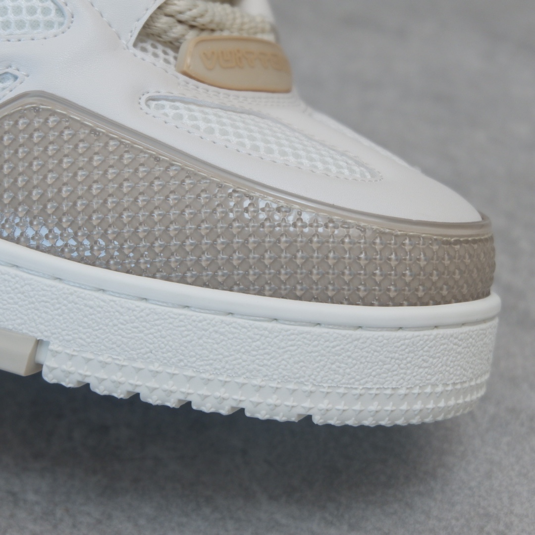 路易威* Skate sneaker该款融入街头元素的鞋履借鉴了上述系列的90年代设计风格,采用意大利制造并结合技术网眼布料、小牛皮和绒面革材质呈现,将结合Monogram 牛仔布与闪闪发光的施华洛世奇水晶和技术网格相结合工艺,以及绳素般的粗鞋带亦为值得留意的亮点