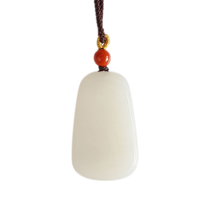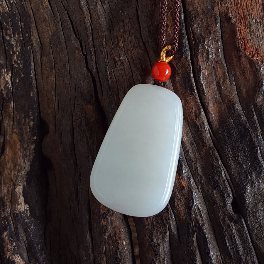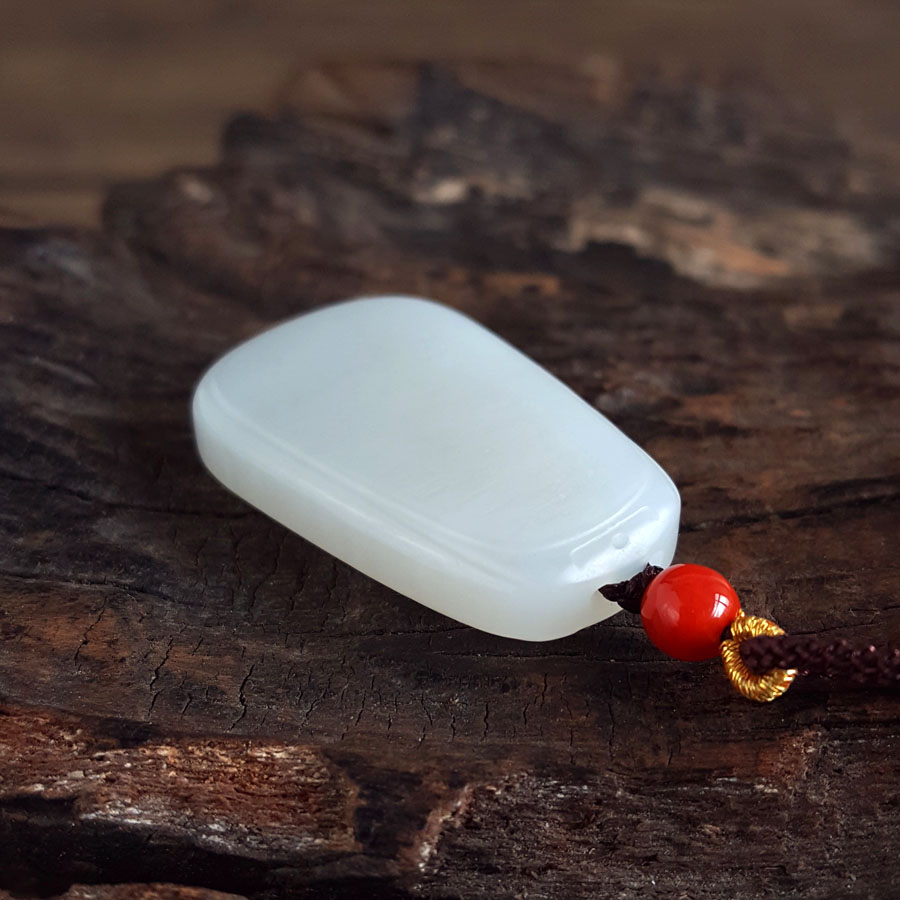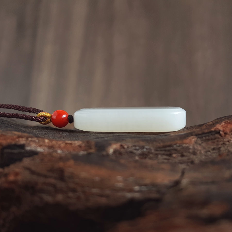 【天然正品】天然青海料细腻一级白油润度佳平安无事牌和田玉吊坠项链32.7*20.3*6.4MM(皆取最大值)中性款现售价:780特价!010725NJM18