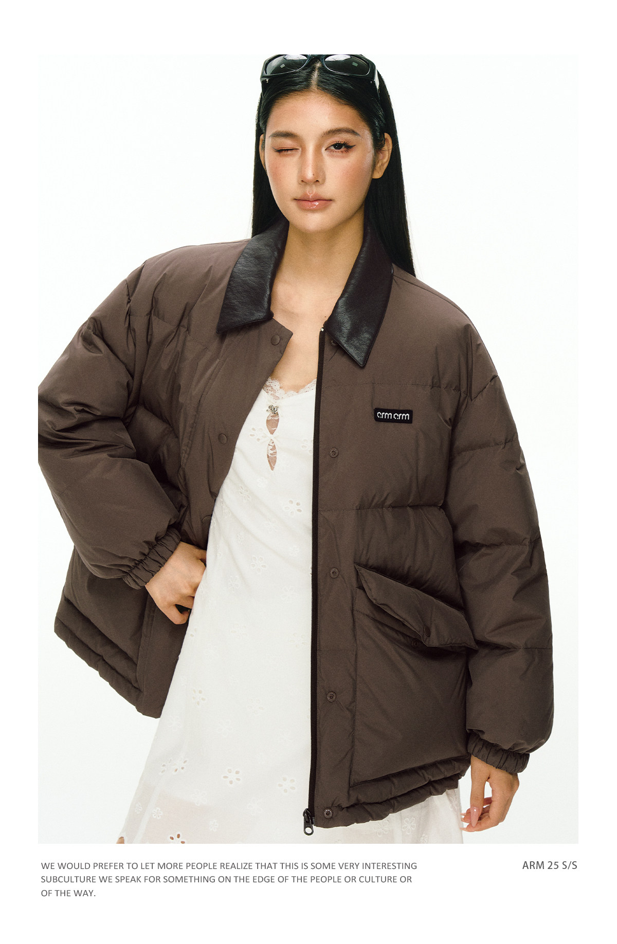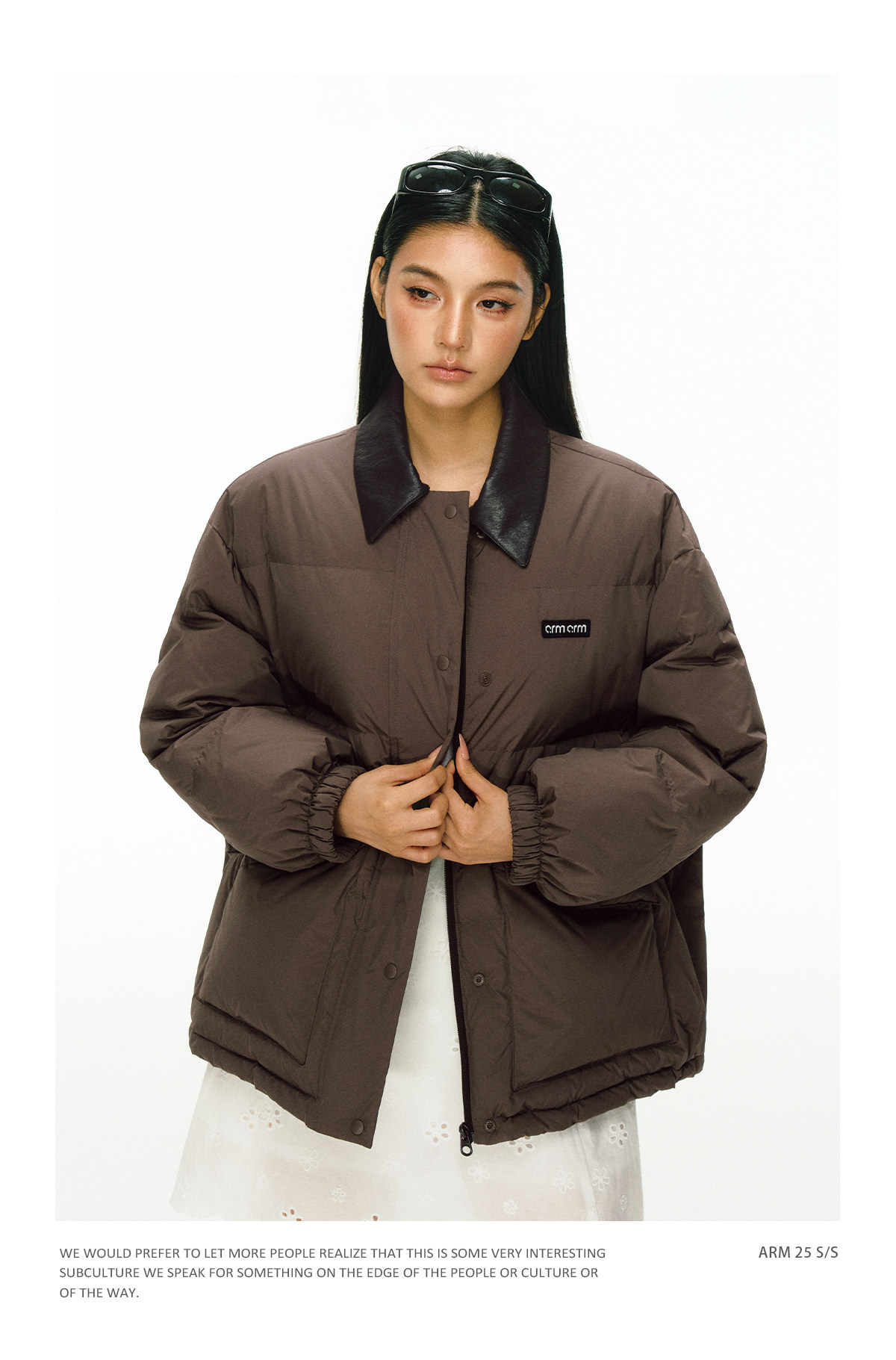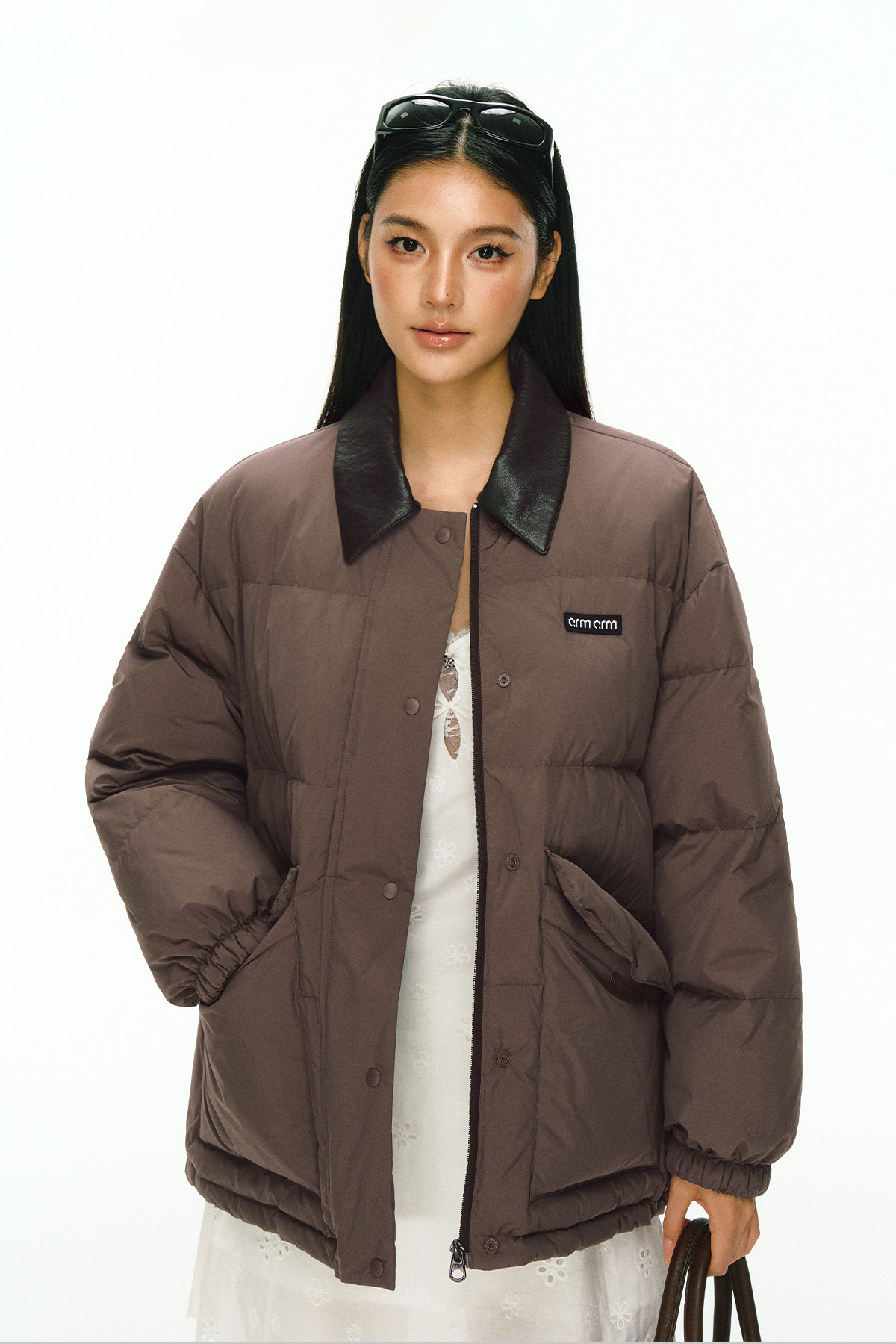 Ariseism 美式复古撞色皮领加厚羽绒服外套女冬季新款加厚上衣