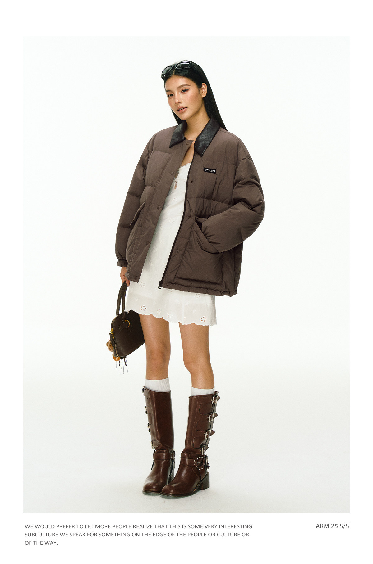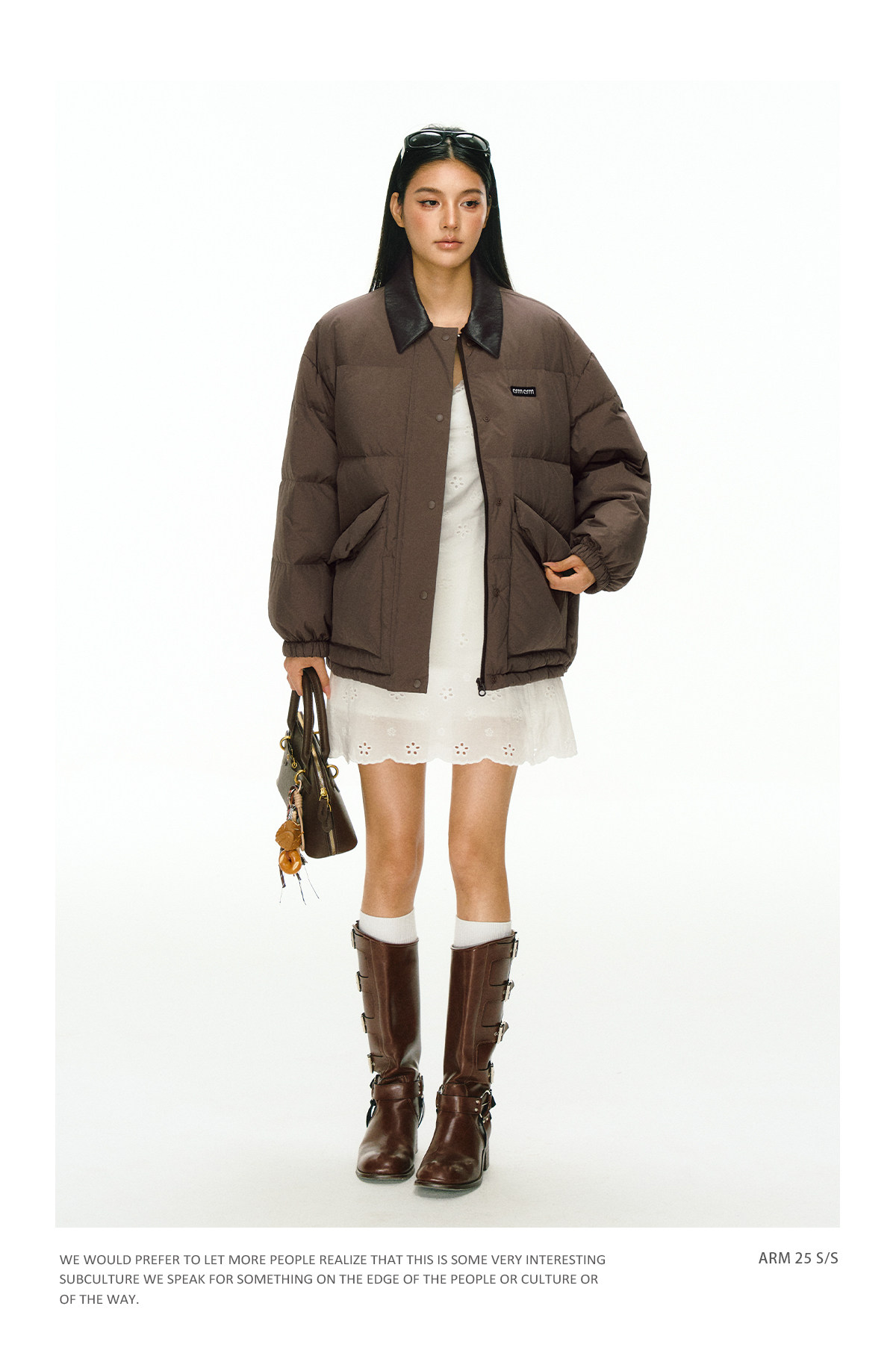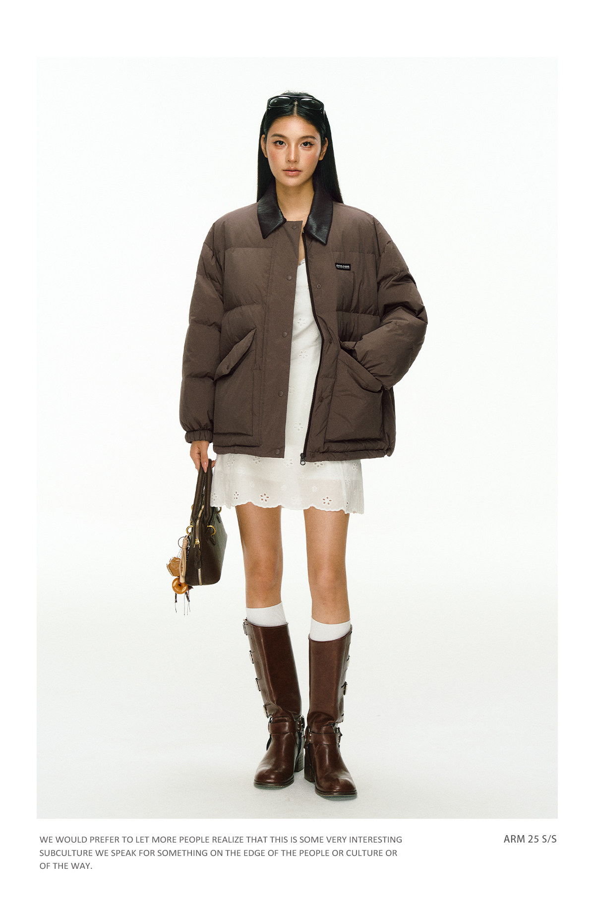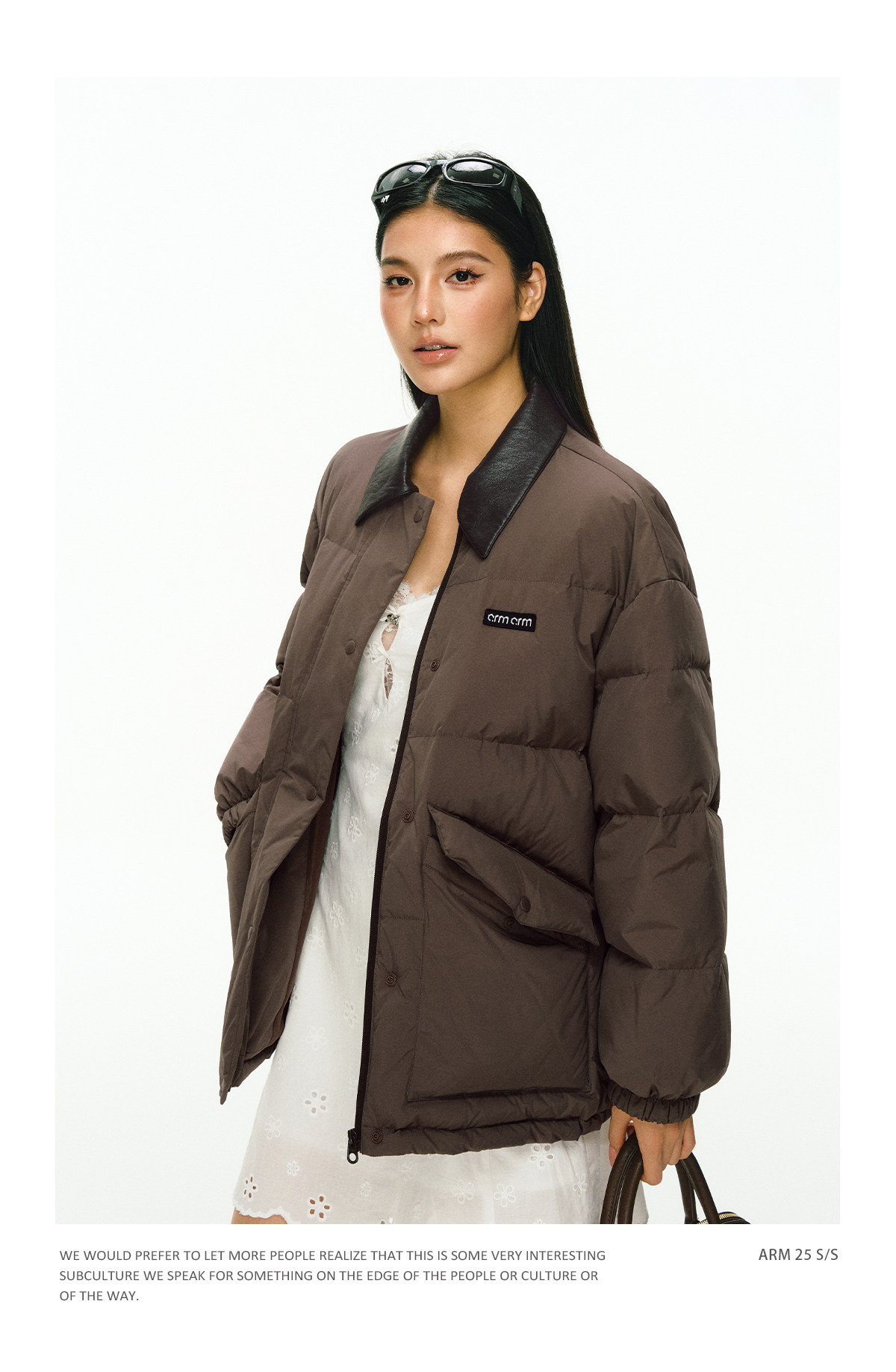 Ariseism 美式复古撞色皮领加厚羽绒服外套女冬季新款加厚上衣