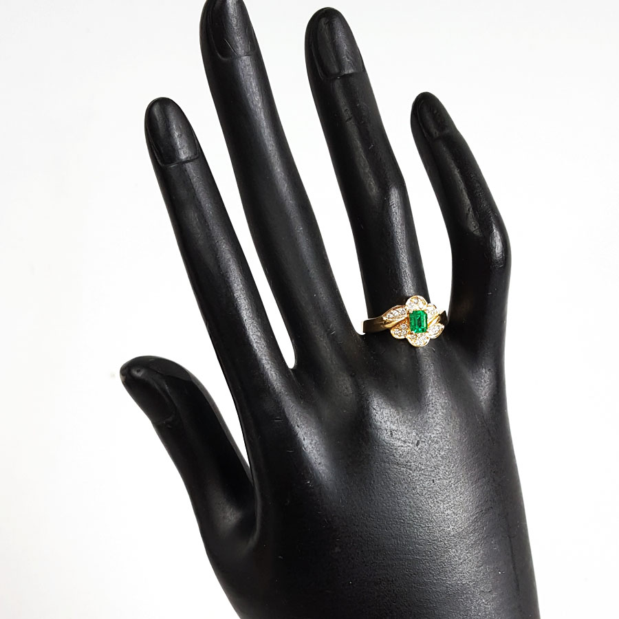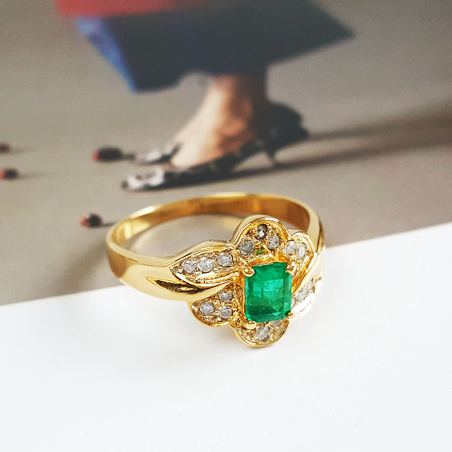 【天然正品】AU750黄金镶钻镶天然Vivid Green祖母绿(仁慈、友爱)戒指15号(戒圈可改)020226NJ15