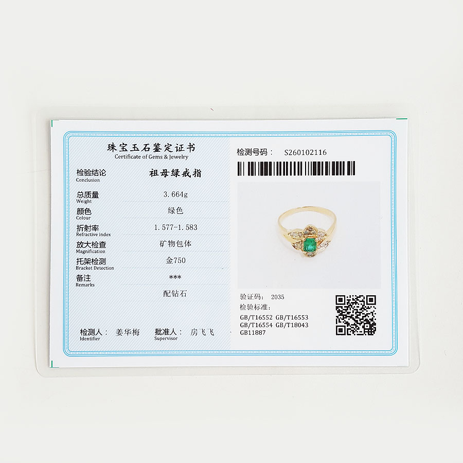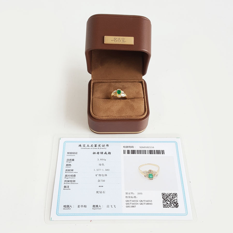 名称 | AU750黄金镶钻镶天然Vivid Green祖母绿(仁慈、友爱)戒指 |