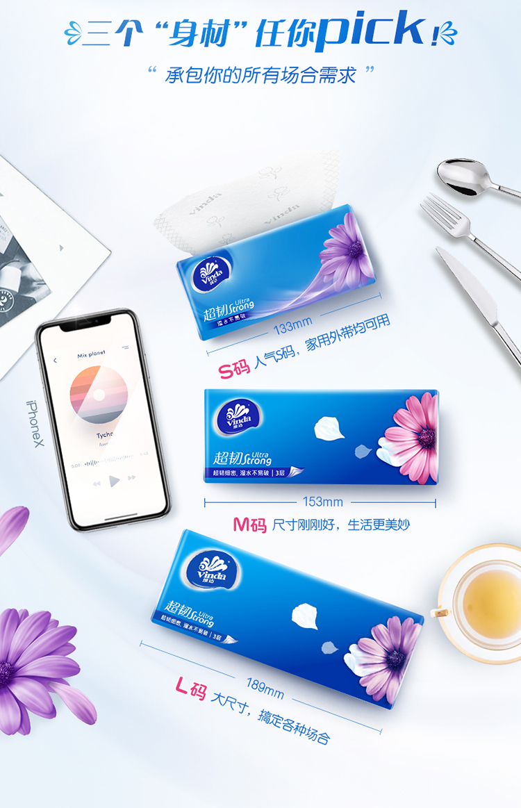 【官方包邮】维达超韧韧性升级抽取式纸面巾 S码3层130抽6包(自然无香)
