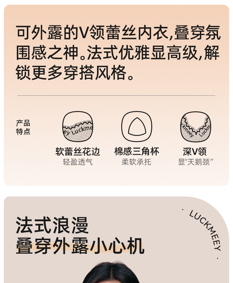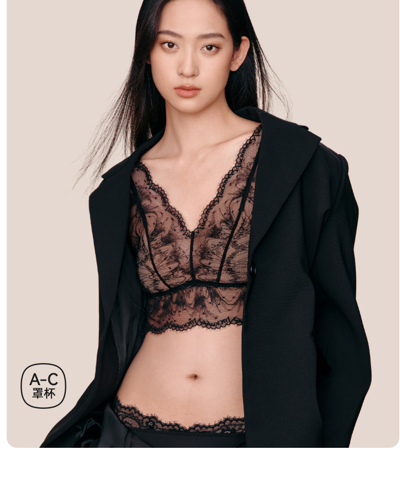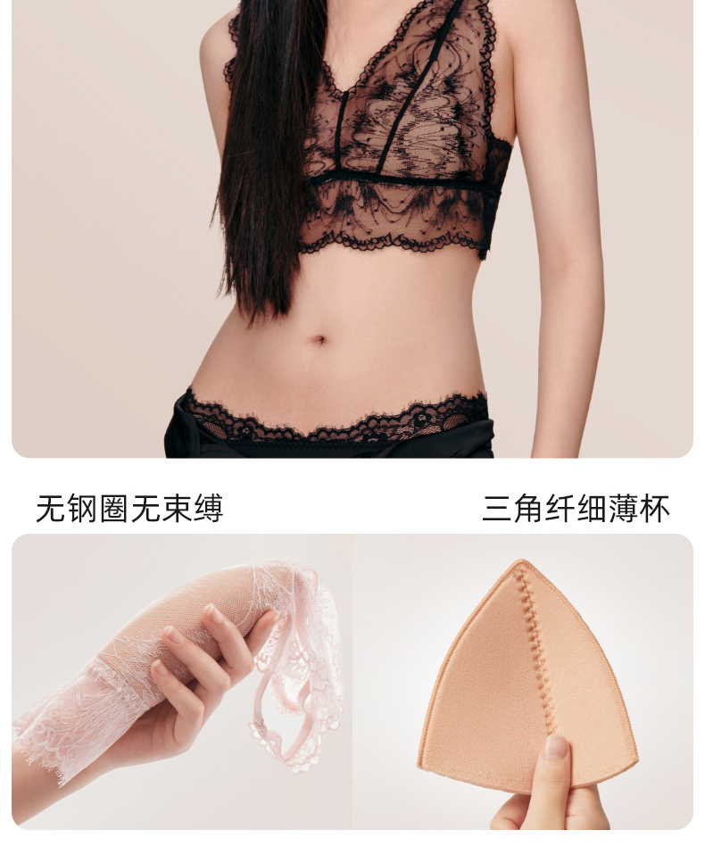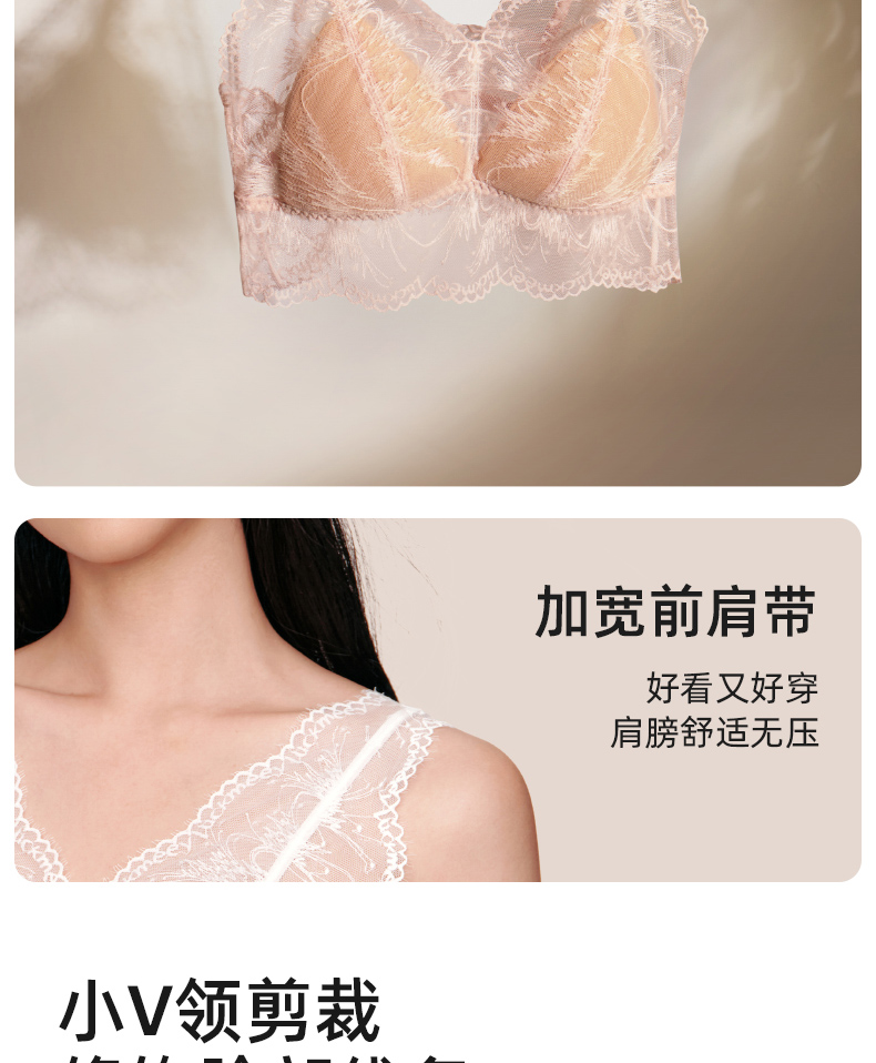幸棉 法式纤盈V领蕾丝拼接无钢圈文胸聚拢内衣