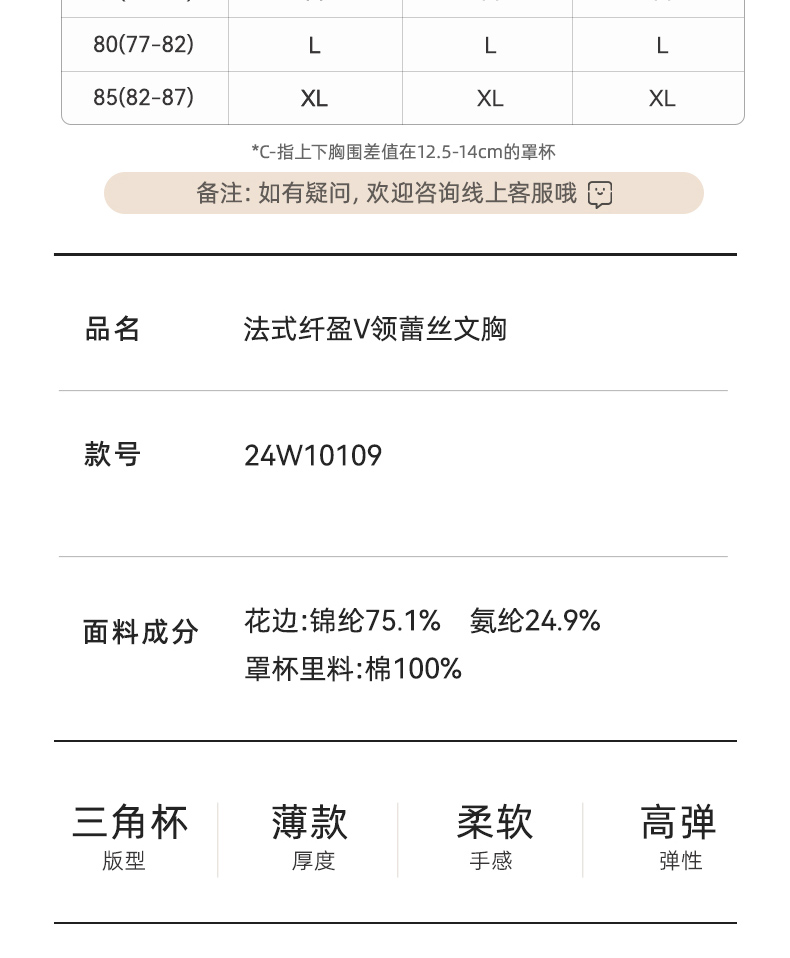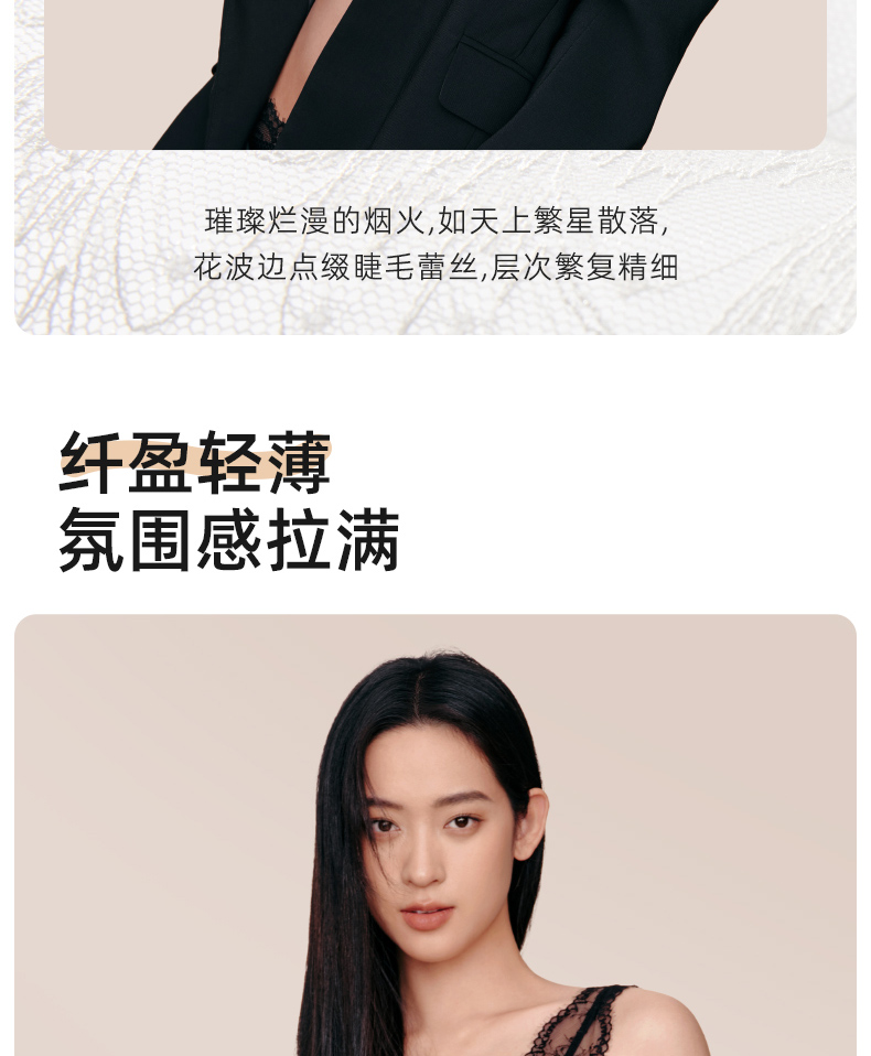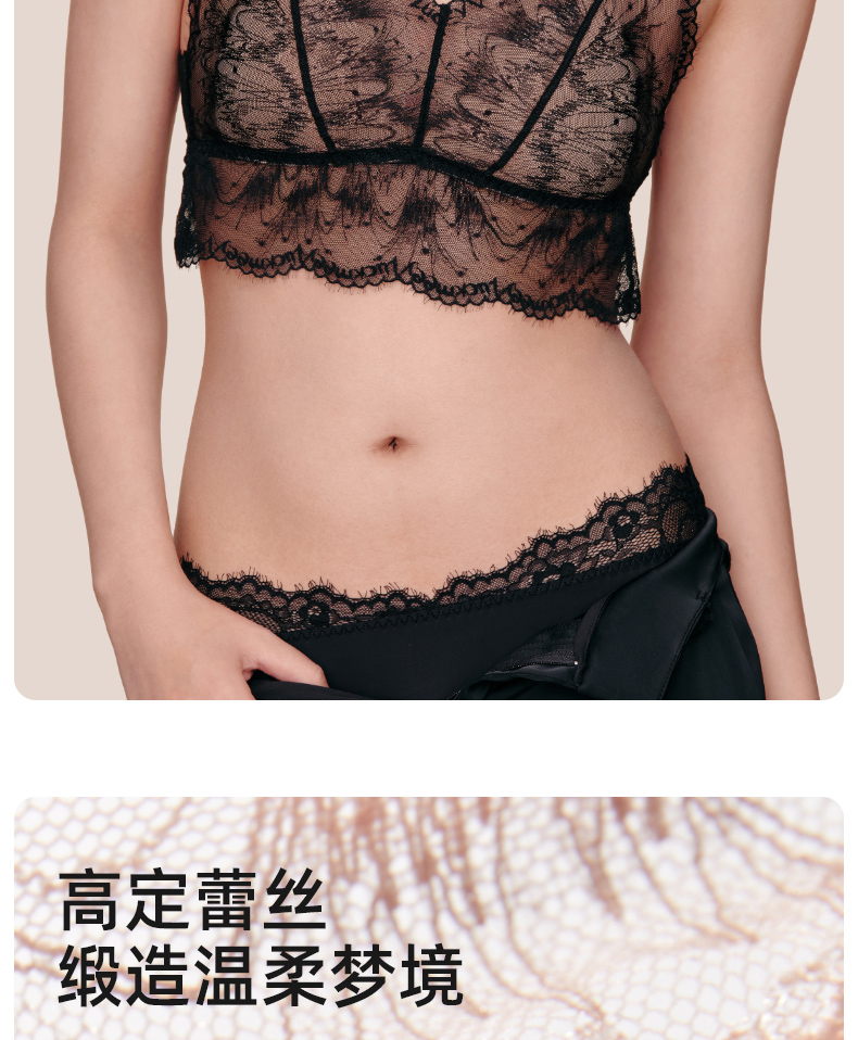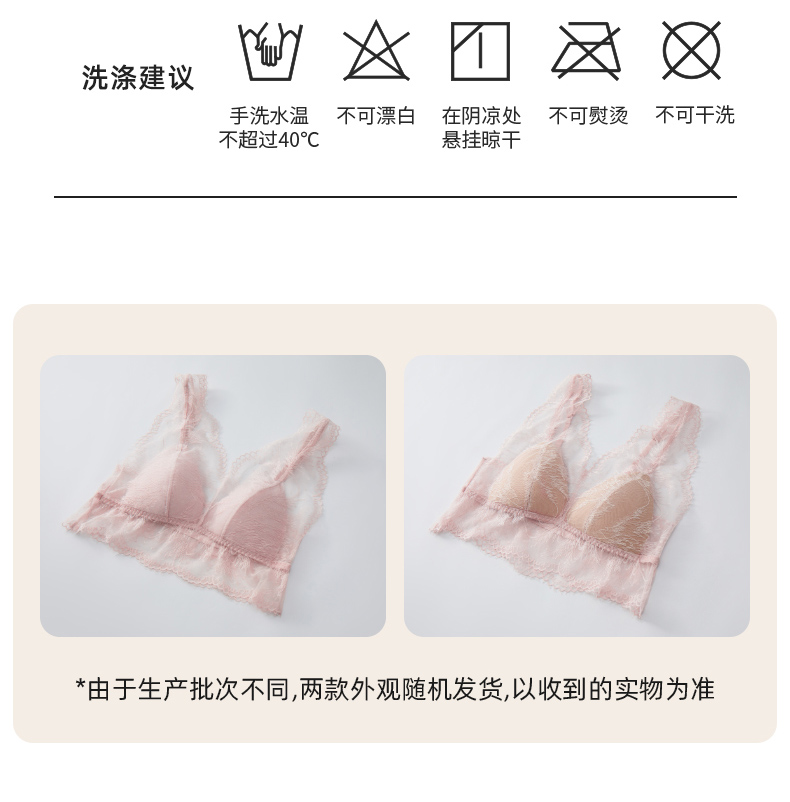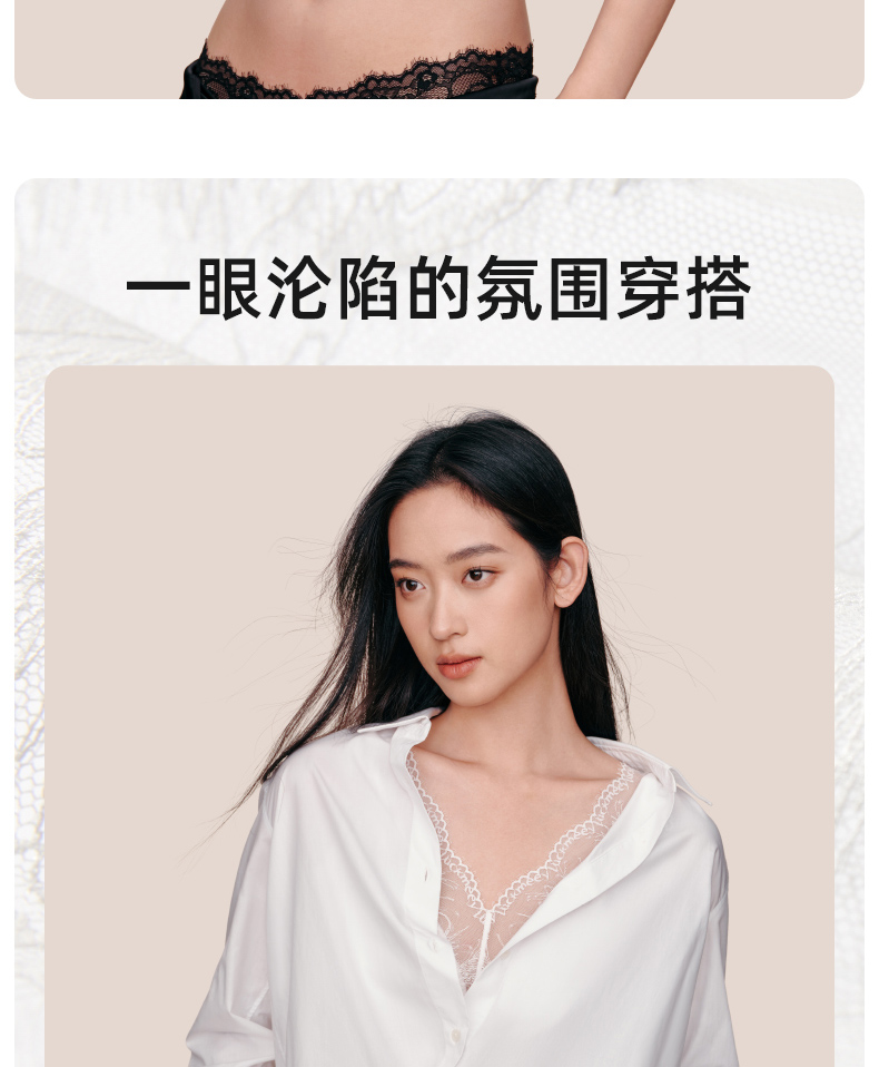 幸棉 法式纤盈V领蕾丝拼接无钢圈文胸聚拢内衣
