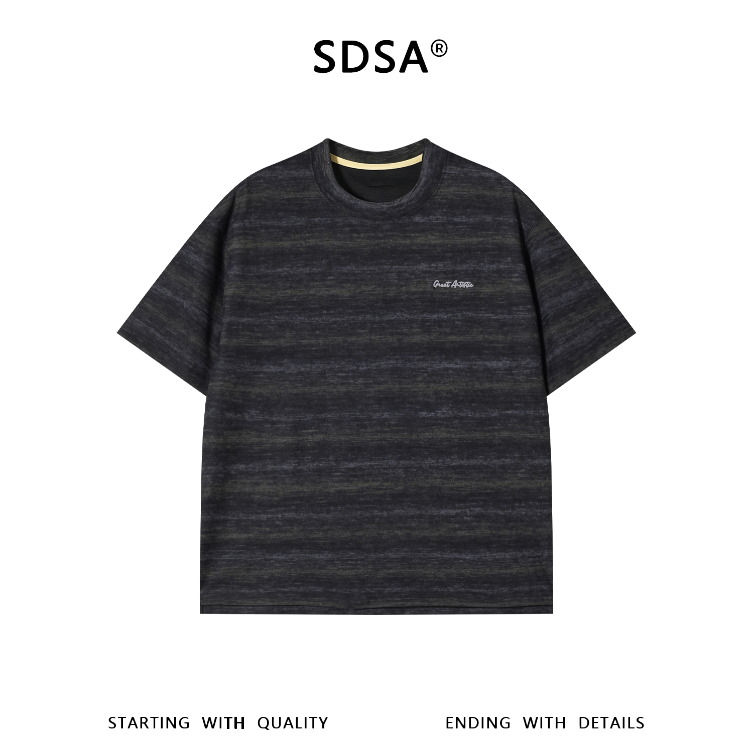 SDSA男装2026新款高贵轻奢韩系扎染条纹刺绣字母圆领短袖T恤百搭