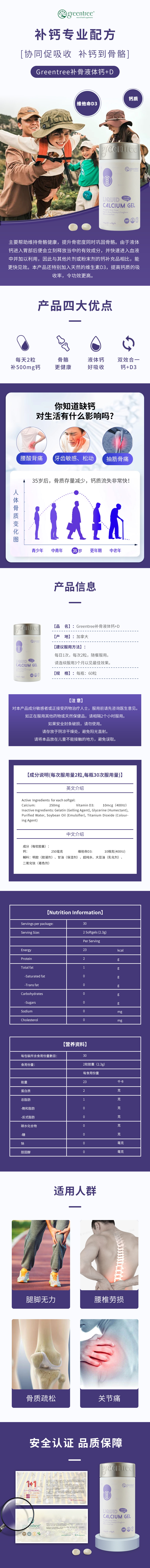 【保税仓】正品 增加骨密度 强健骨骼 牙齿 加拿大greentree补骨液体钙+D(60粒)