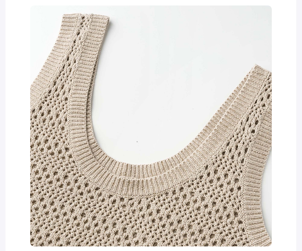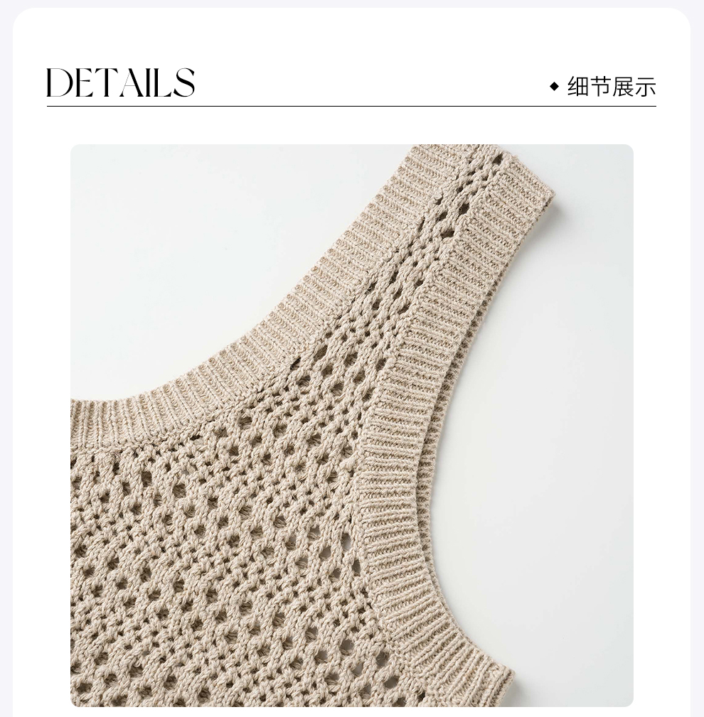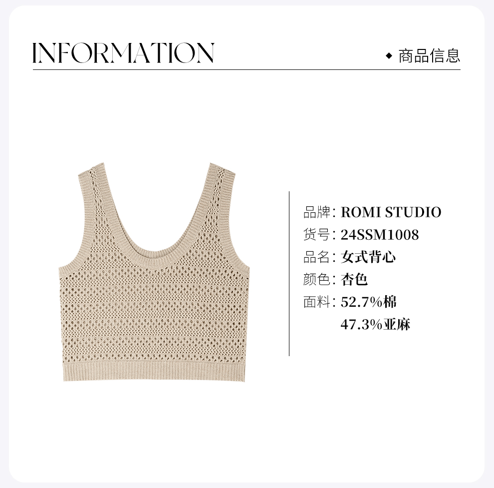 ROMI STUDIO“纵横交织”5s亚麻棉混纺桂花针挑孔针织背心24SSM1008