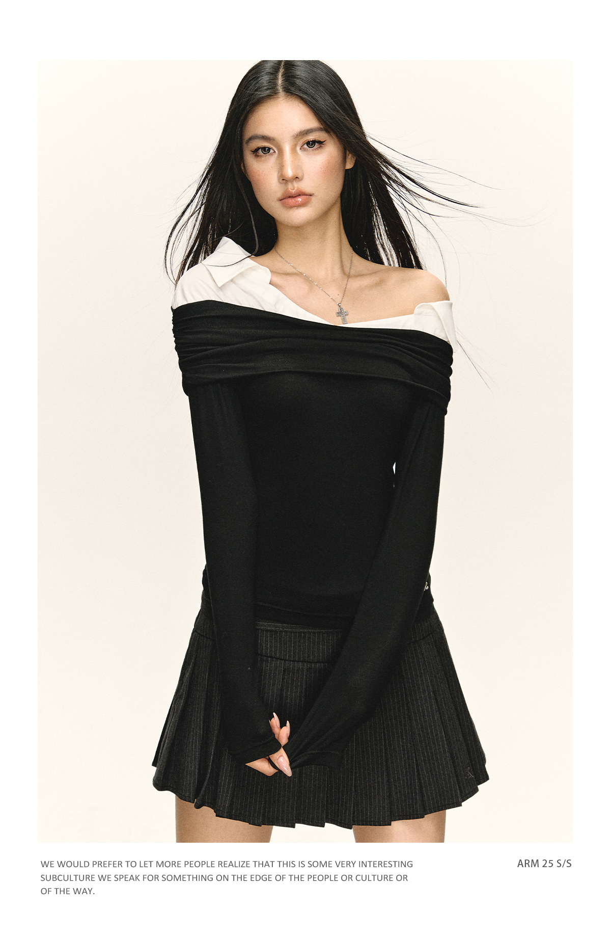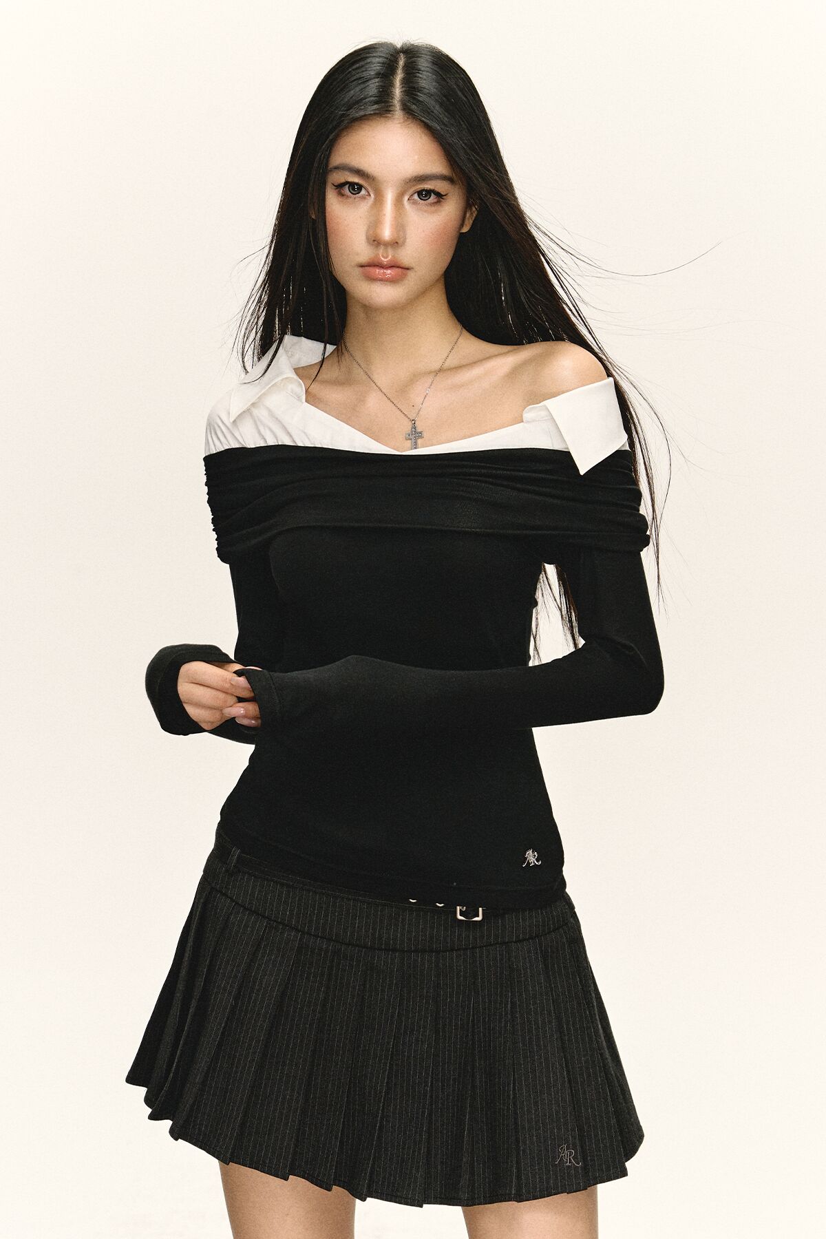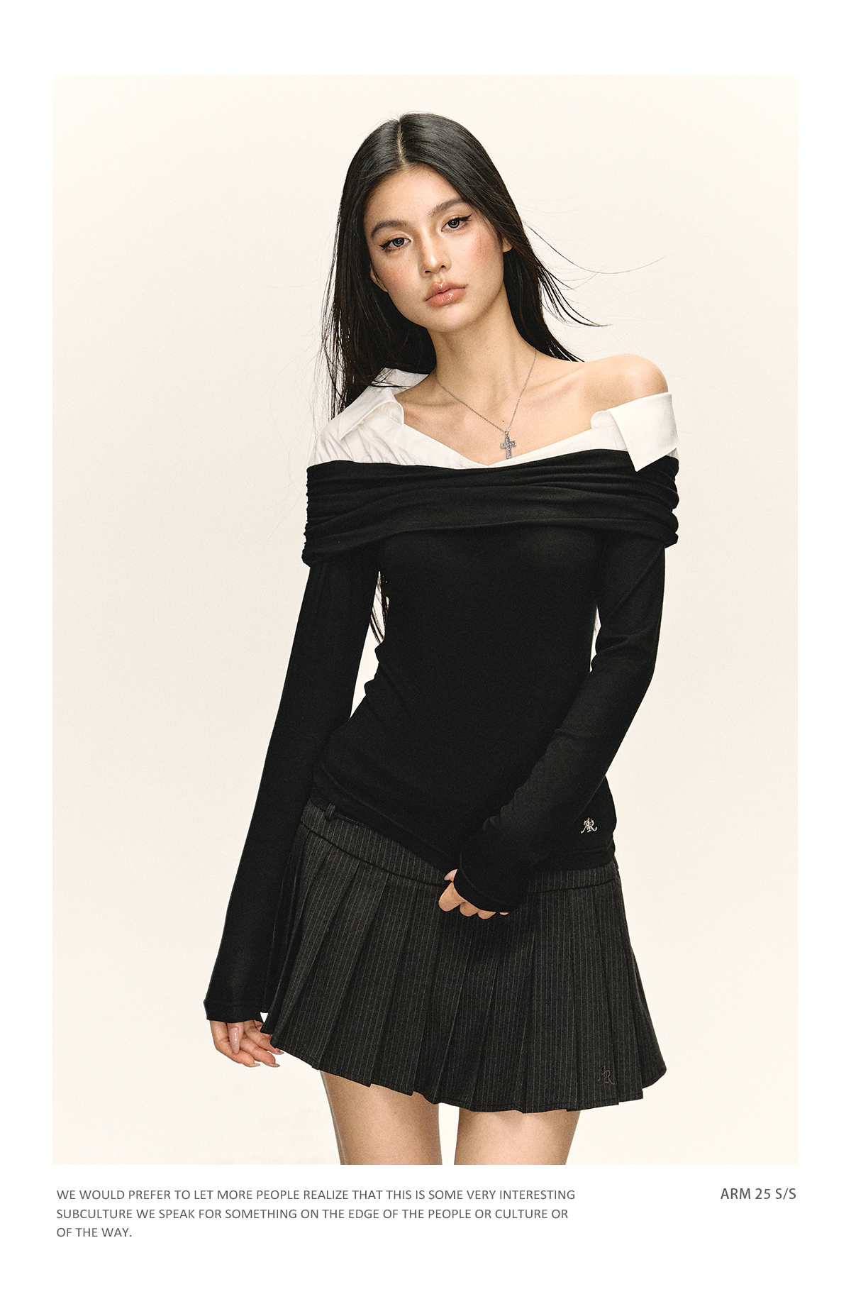 Ariseism 美式复古设计感假两件长袖T恤女秋季新款上衣