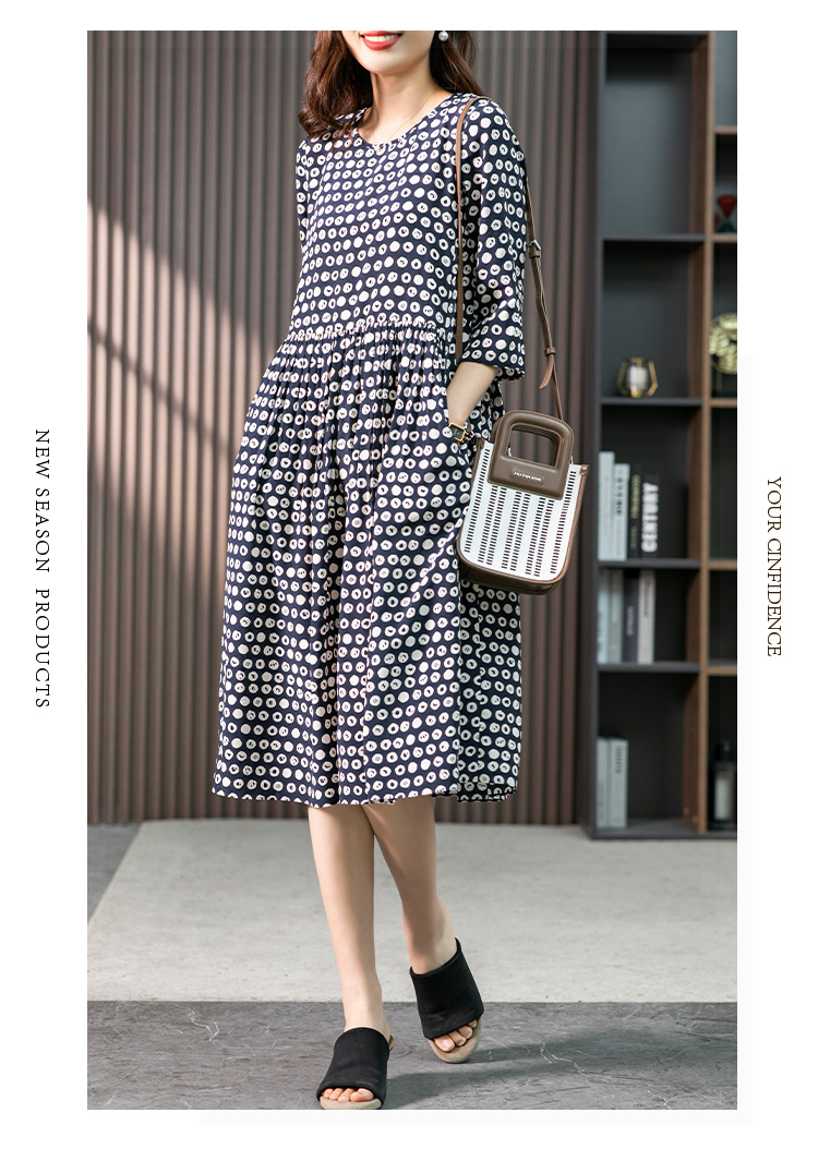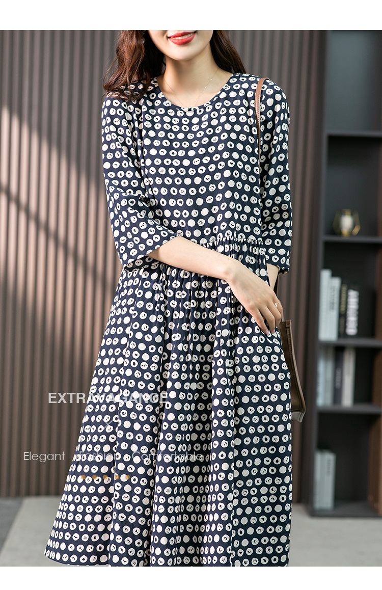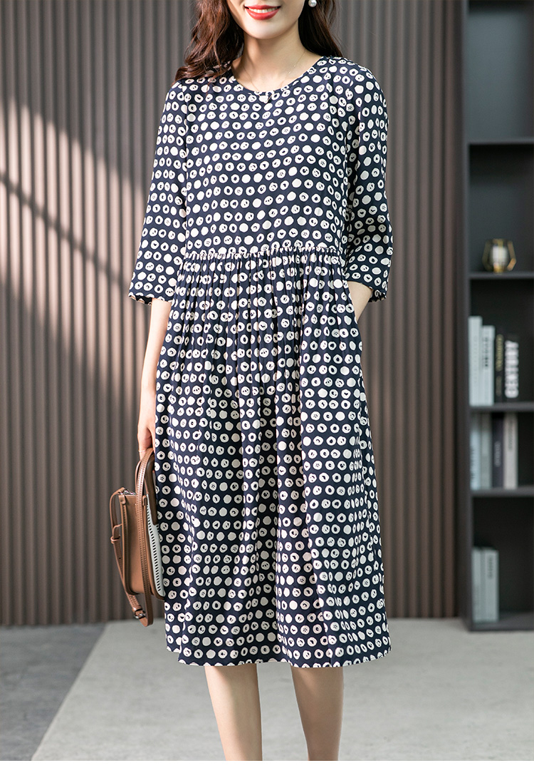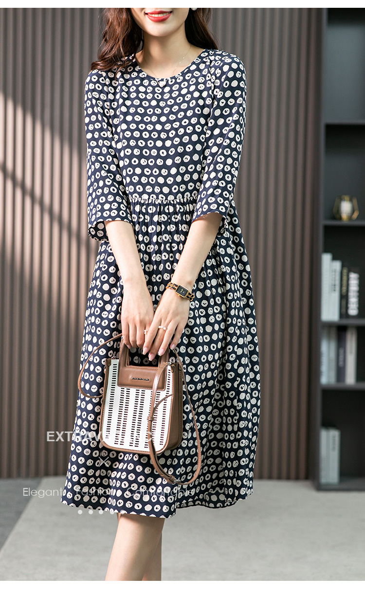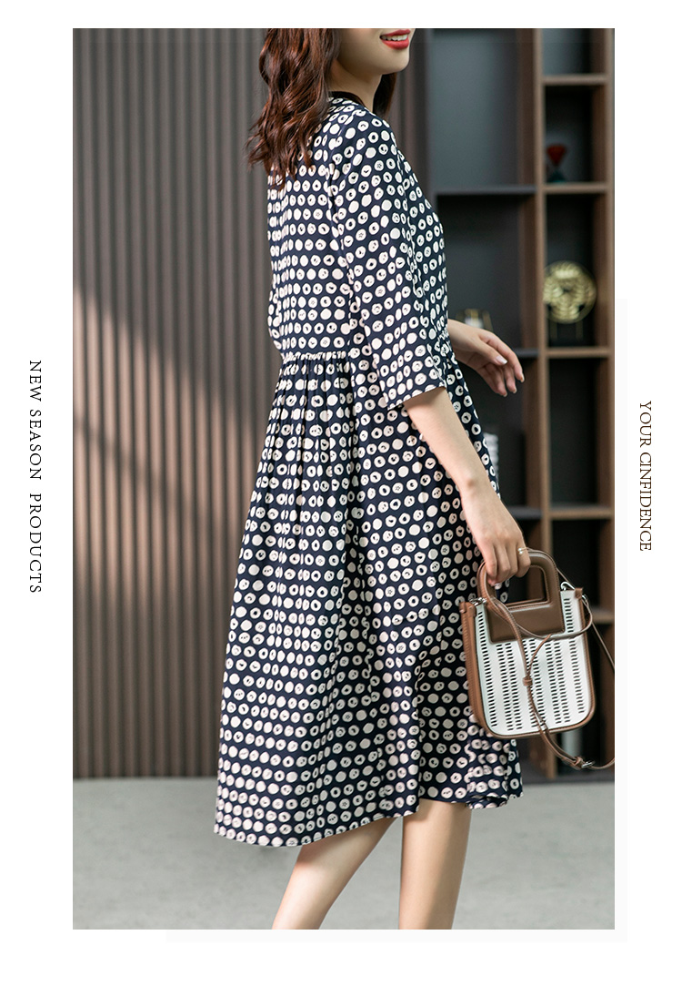 85692原形醋酸连衣裙女波点裙子夏季2024新款韩版收腰显瘦印花A字裙