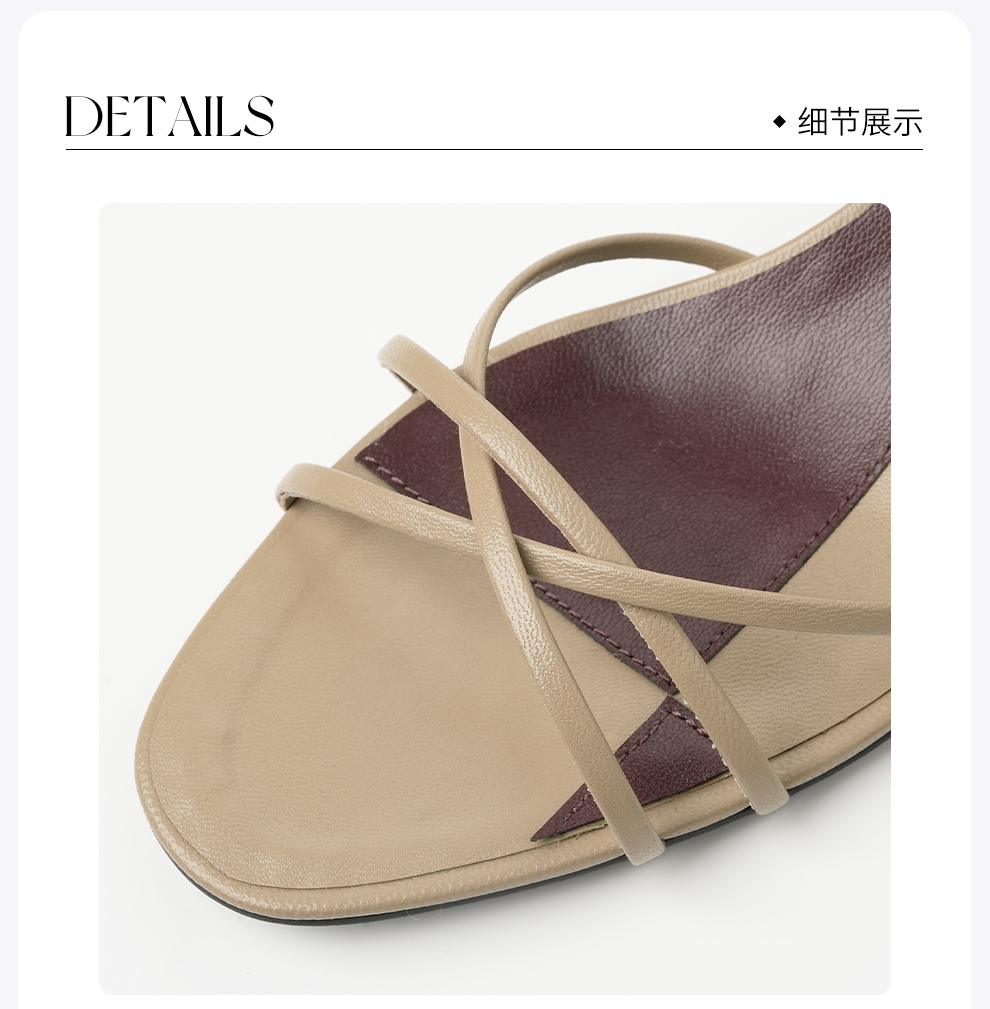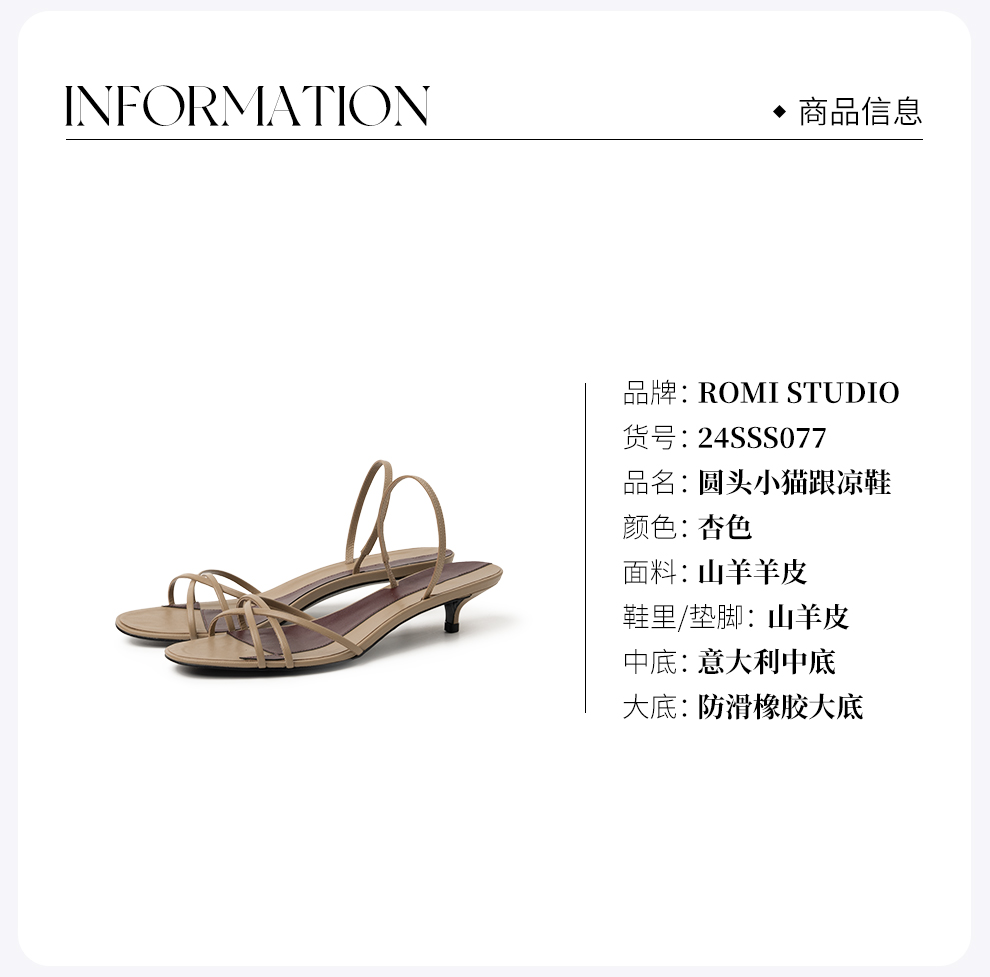 ROMI STUDIO “法式优雅” 羊皮交叉细带圆头小猫跟凉鞋 24SSS077