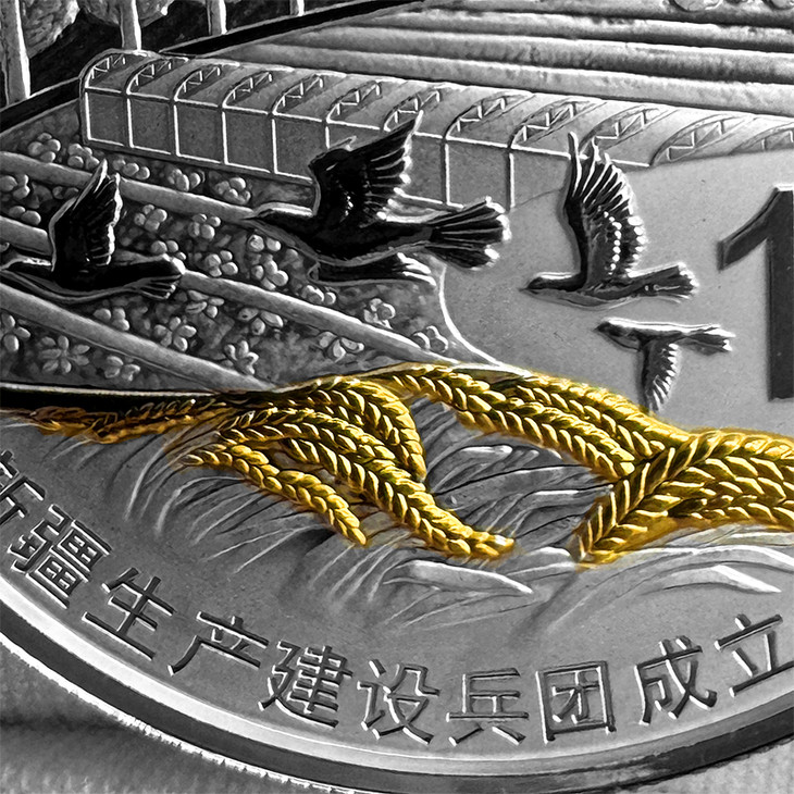 新疆生产建设兵团成立60周年1盎司银币 封装评级带证书 带礼盒