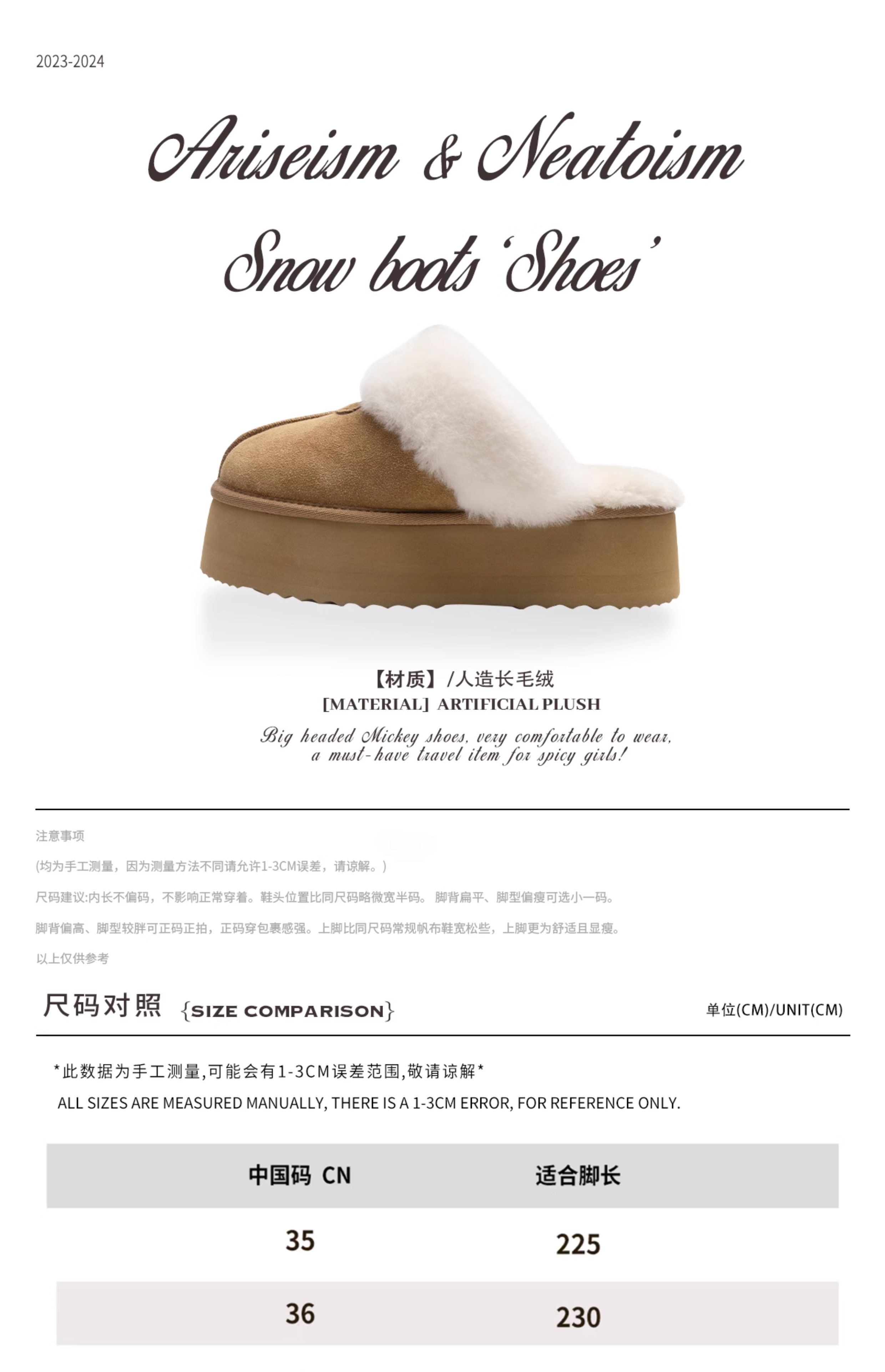Ariseism&Neatoism 秋冬新款休闲增高包头厚底毛毛半拖鞋女外穿