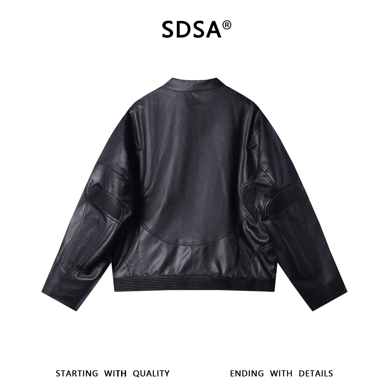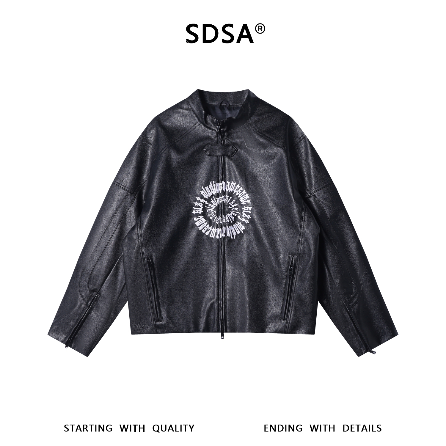 SDSA男装2026新款潮牌未来感皮衣男女同款亮面刺绣机车风上衣