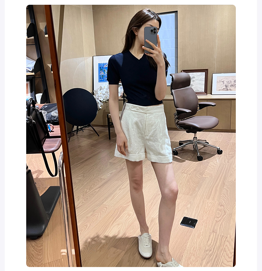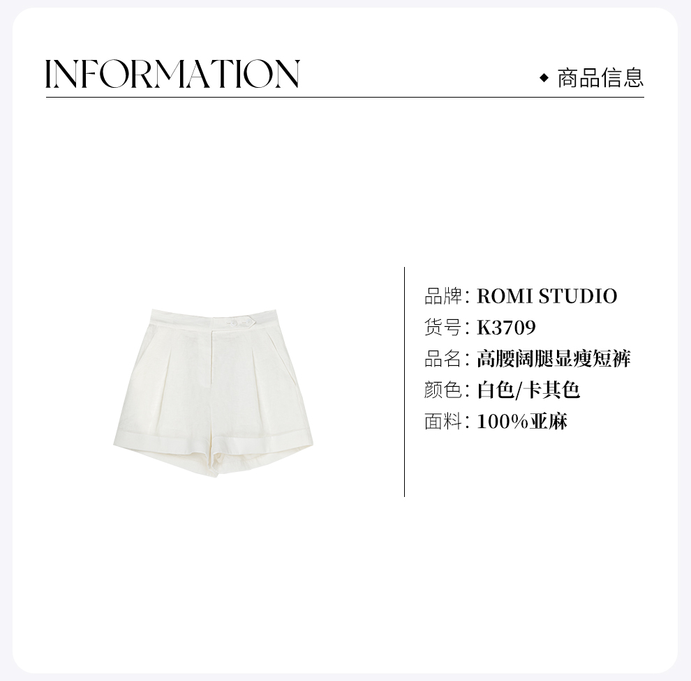 ROMI STUDIO“精致呼吸”简约百搭好打理高腰西装卡其色短裤 K3709