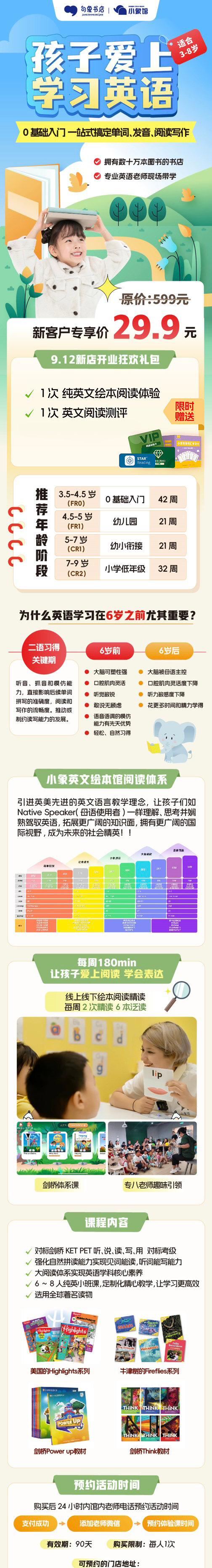 新人特惠6.8元【小象馆线下测评】一次测评看清孩子英语阅读的真实水平!G