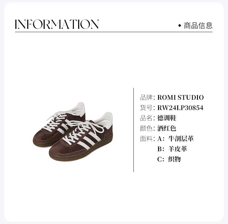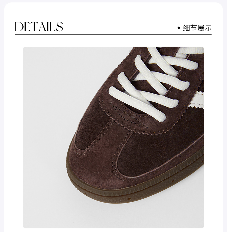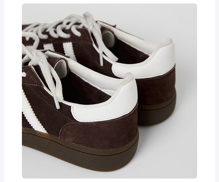 ROMI STUDIO“美式复古”牛皮拼羊皮绒面撞色平底德训鞋RW24LP30854