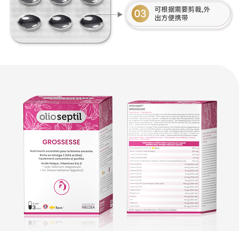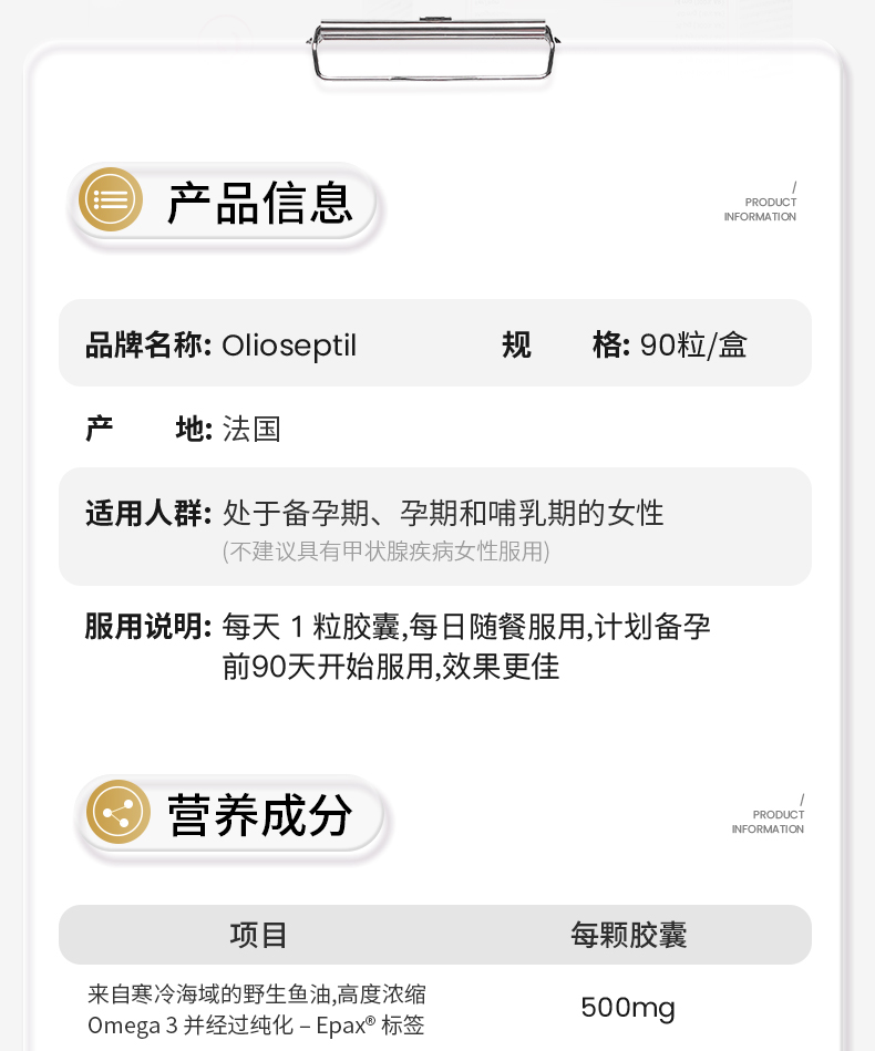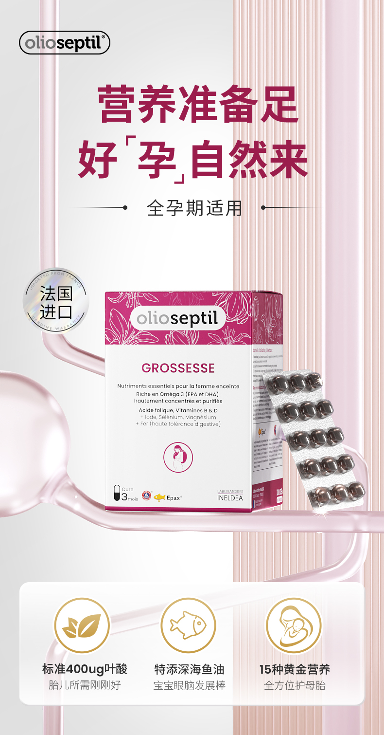 olioseptil久木之名好孕宝叶酸+DHA孕妇早期备孕女士孕期法国进口
