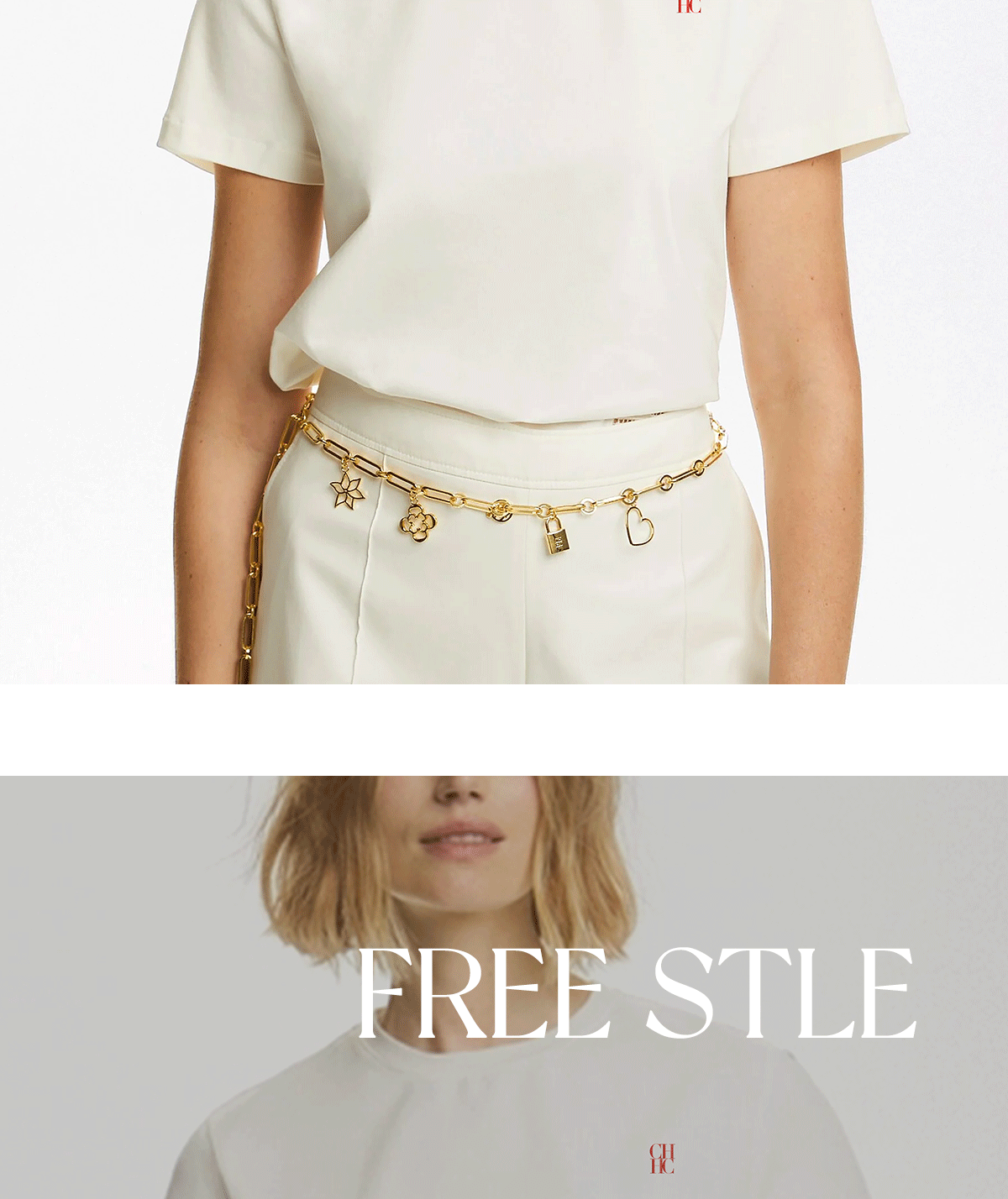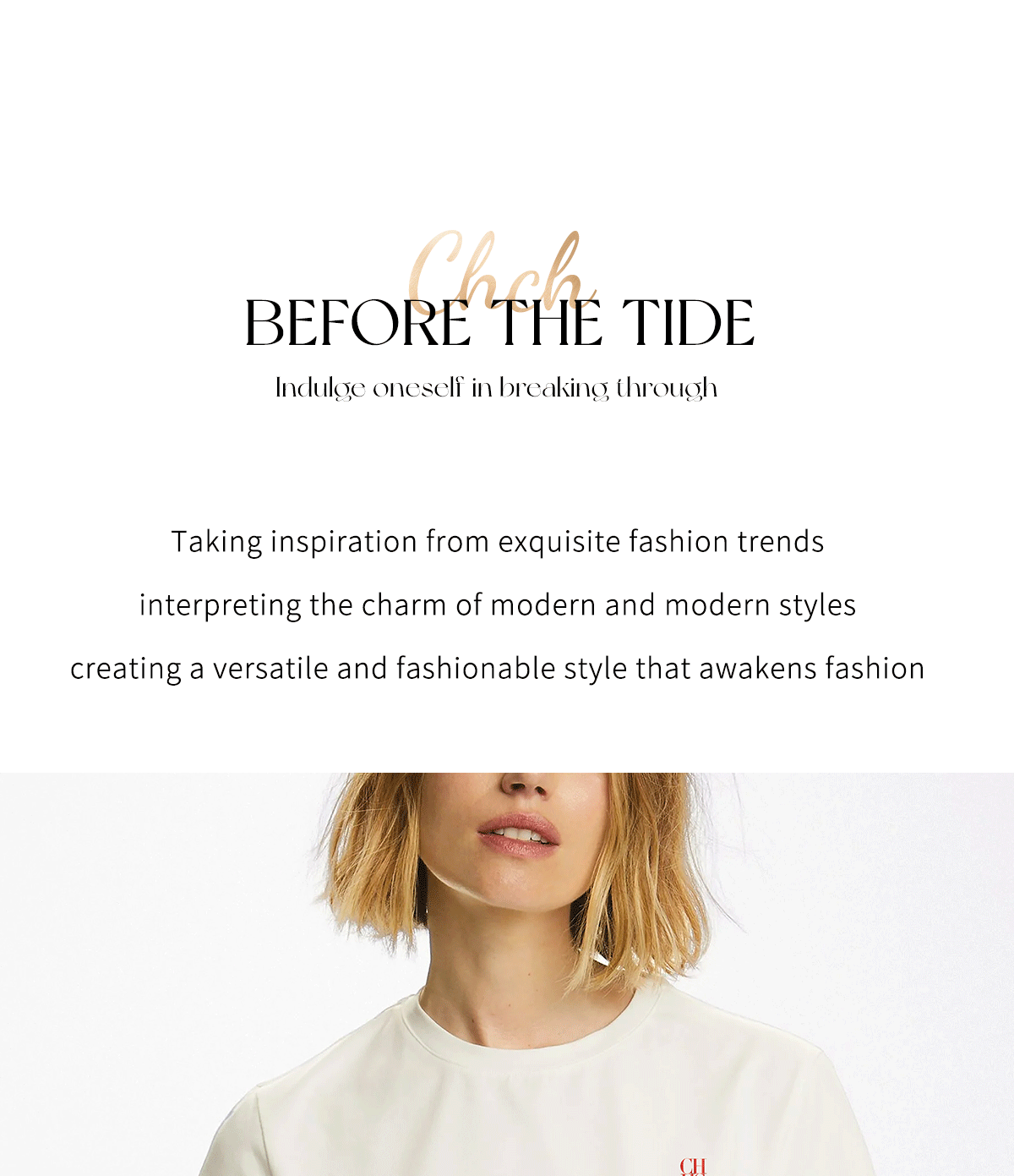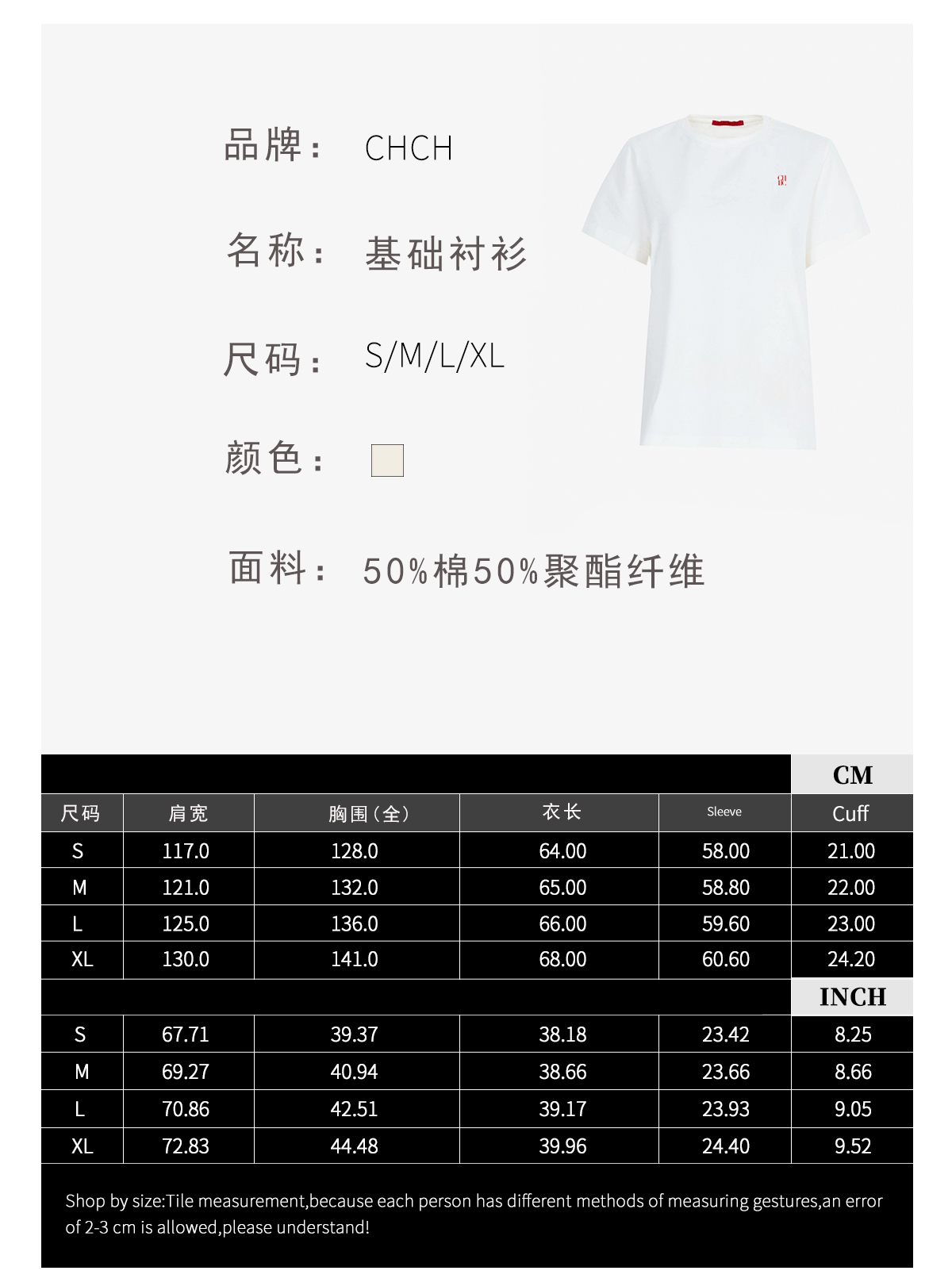 CHCH经典新款休闲白色纯色女式上衣流行百搭刺绣时尚棉质女T恤