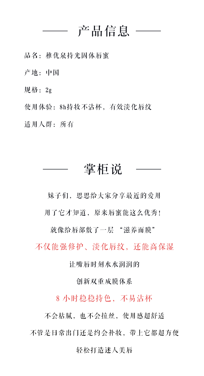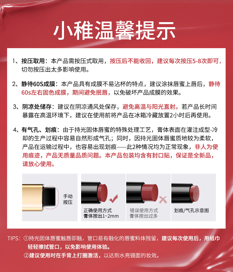 稚优泉小金管固体唇蜜唇釉女镜面水光不易沾杯不易掉色