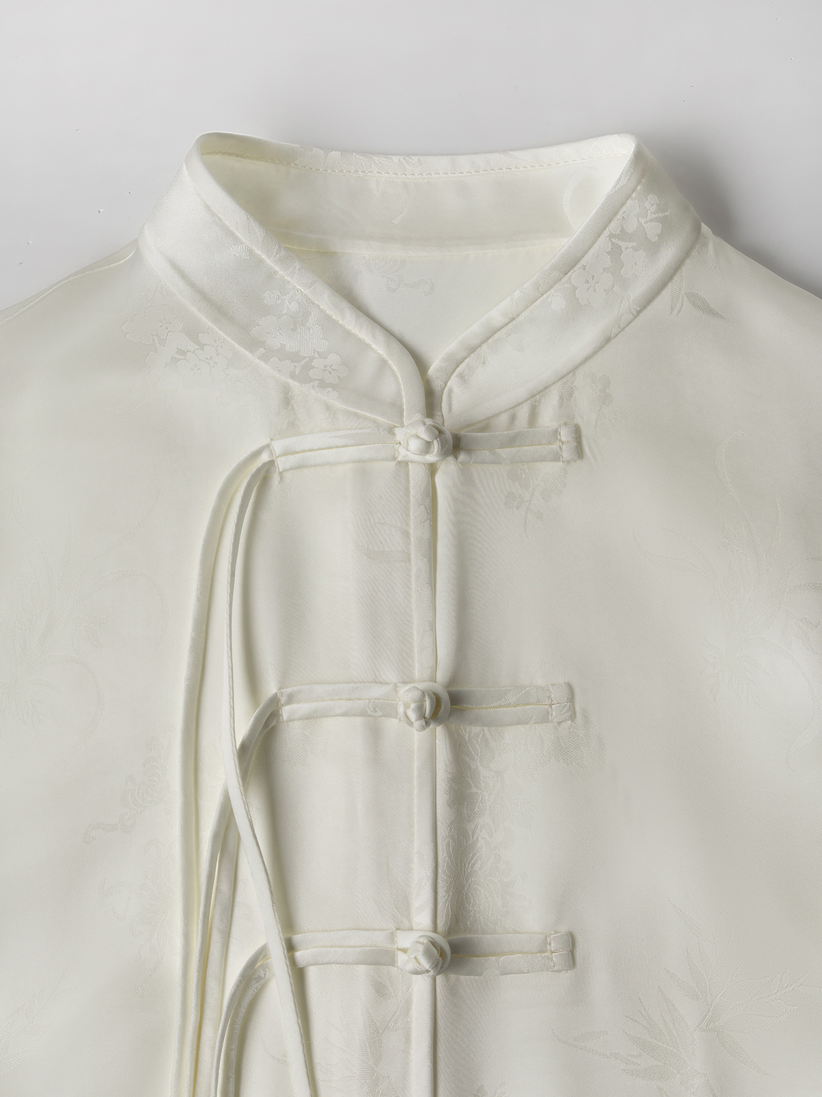 COCO ZONE2024早春穿搭新中式复古盘扣长袖提花衬衫CC1A0452