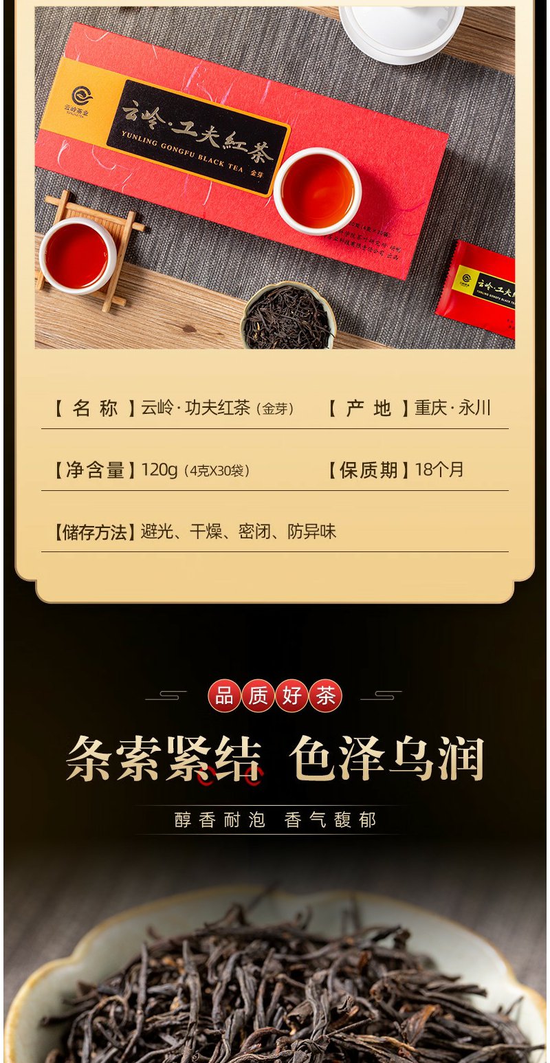 云岭茶业 工夫红茶(金芽)茶叶礼盒装重庆特产送礼送人 红色礼盒120g