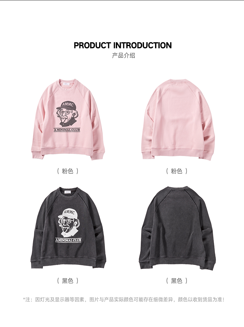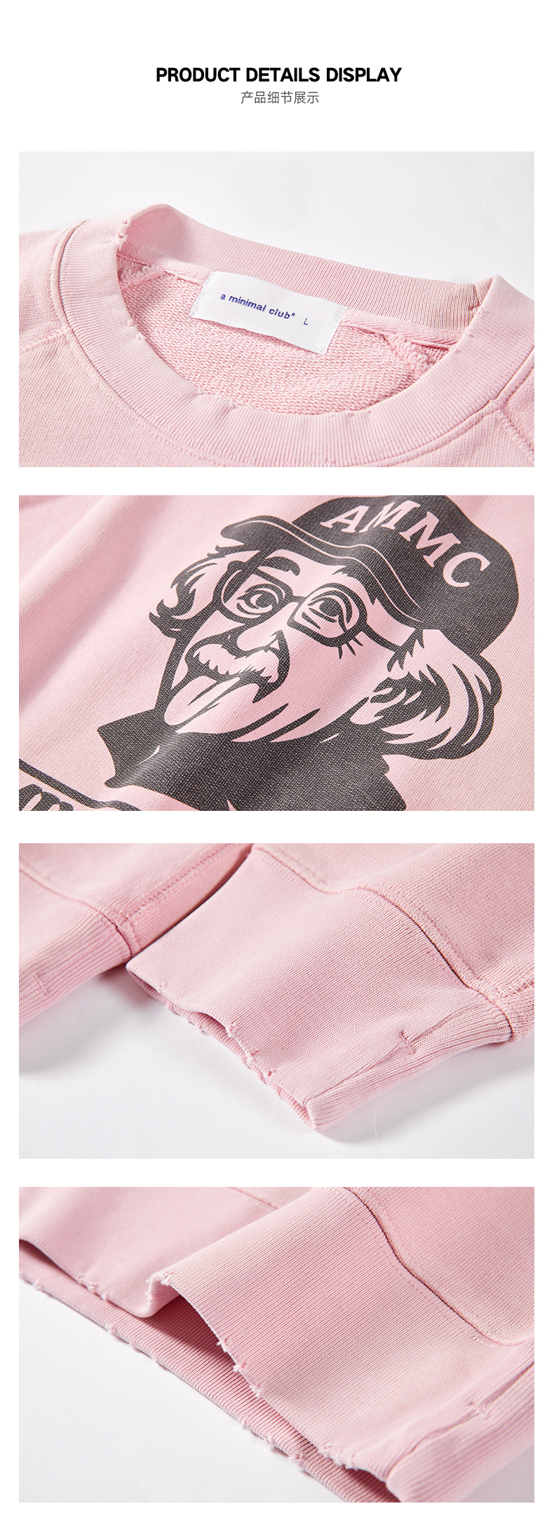 a minimal club做旧水洗450克重毛圈印花卫衣圆领100%棉AM59ST19