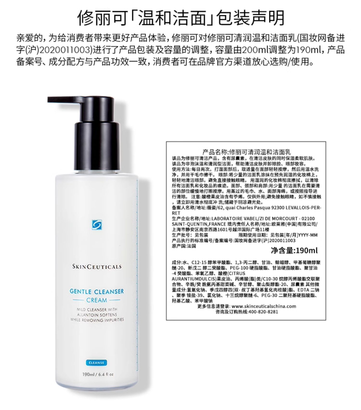 修丽可清润温和洁面乳190ml(注:美妆为特殊商品,下单后不支持退货)