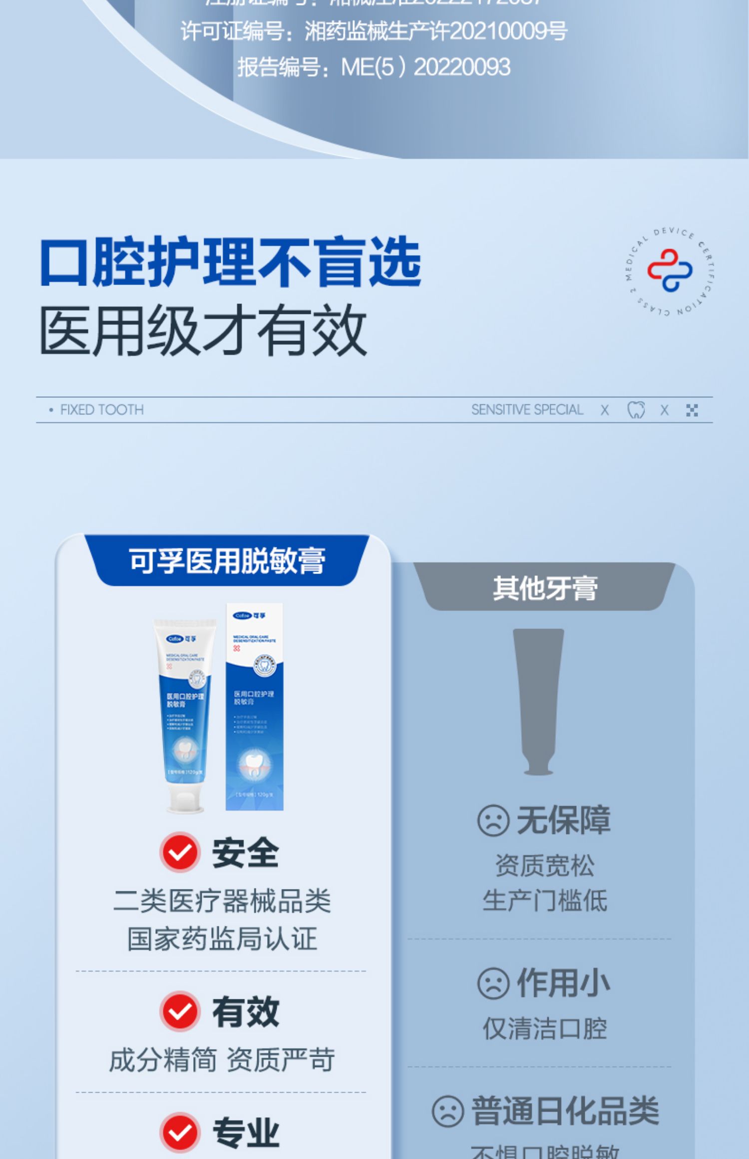 可孚医用脱敏治牙龈炎专用抗过敏牙齿敏感牙龈口腔剂非牙膏牙周炎