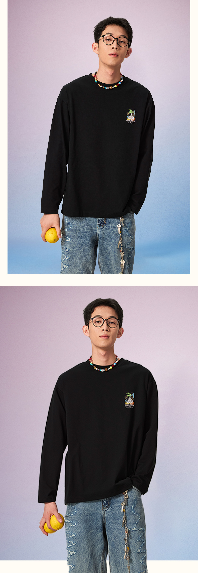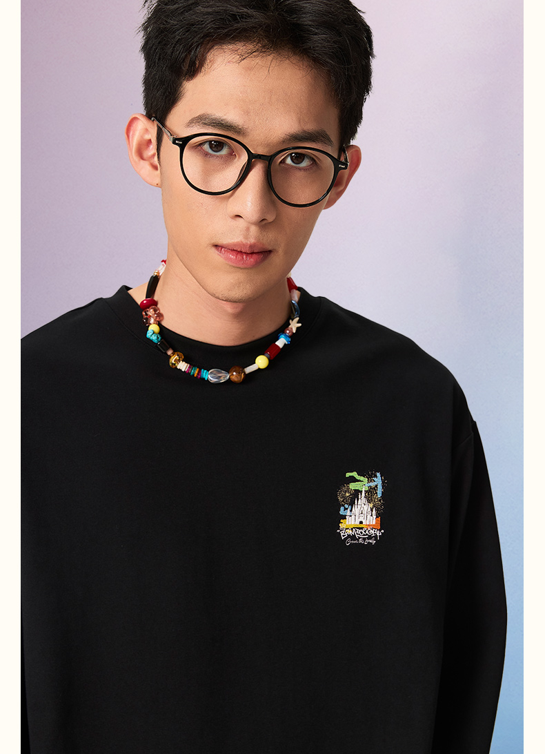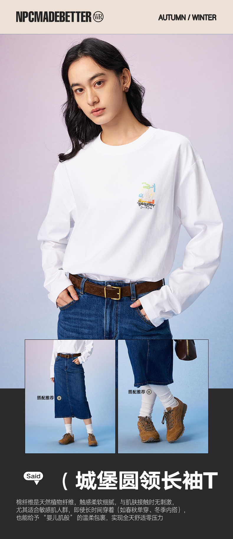 NPC潮牌100%棉城堡印花圆领长袖T恤光变男秋季宽松舒适NP57TL43