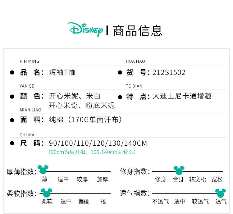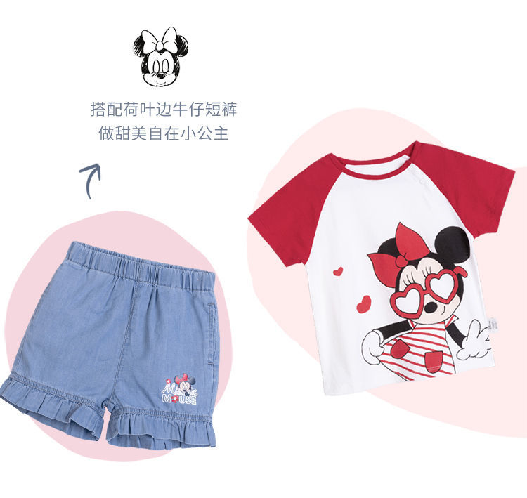 迪士尼童装 女童t恤短袖2021夏季新款洋气中小童上衣儿童打底衫潮212S1502