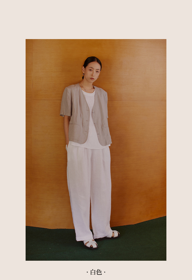 绽放503朵【黑白灰系列·西西里】高端进口砂洗亚麻休闲西装裤