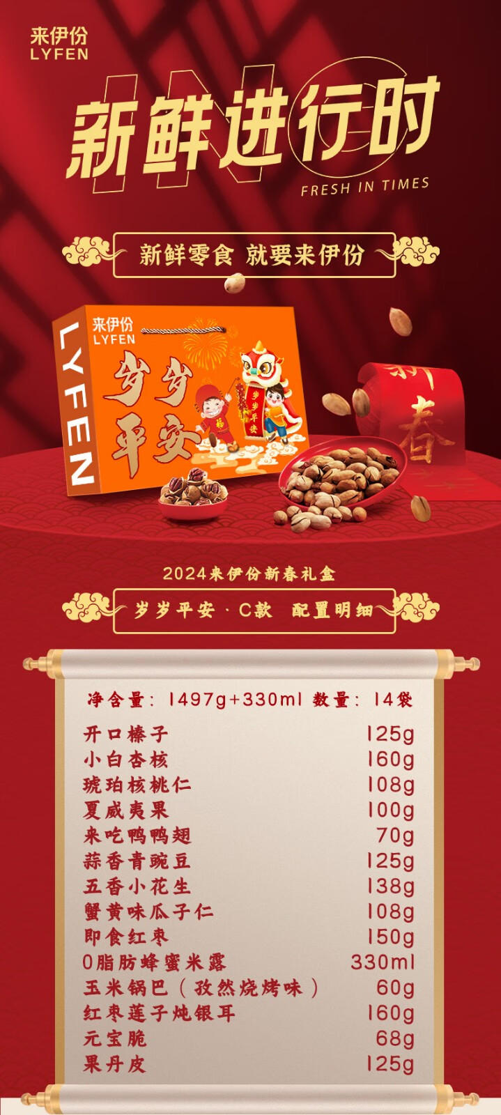 2024来伊份新春礼盒岁岁平安C款1497g+330ml